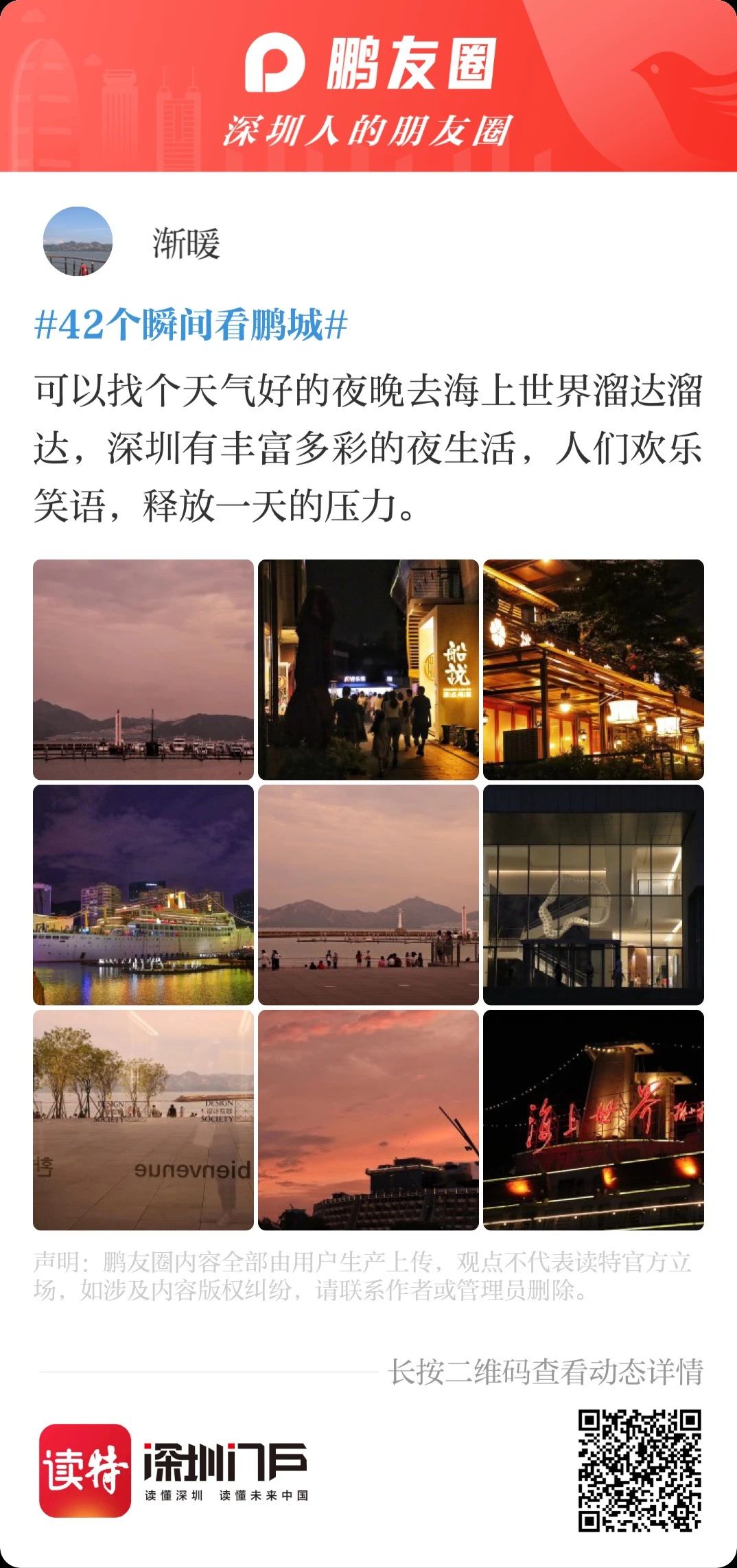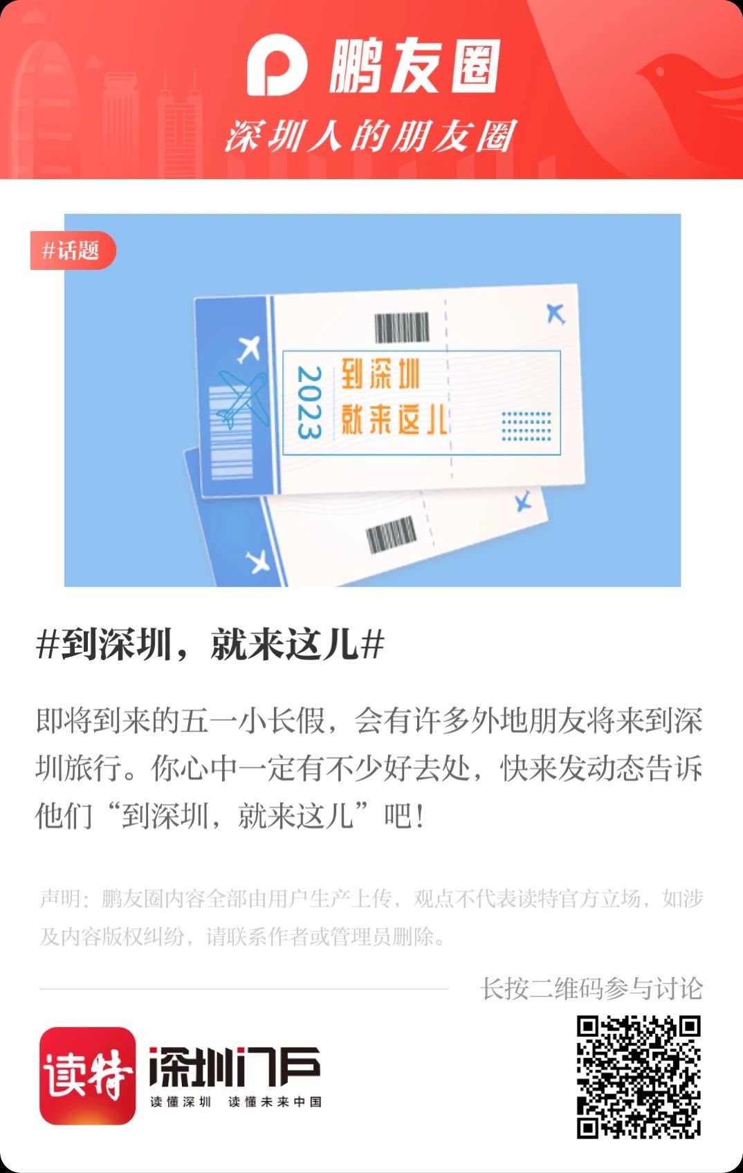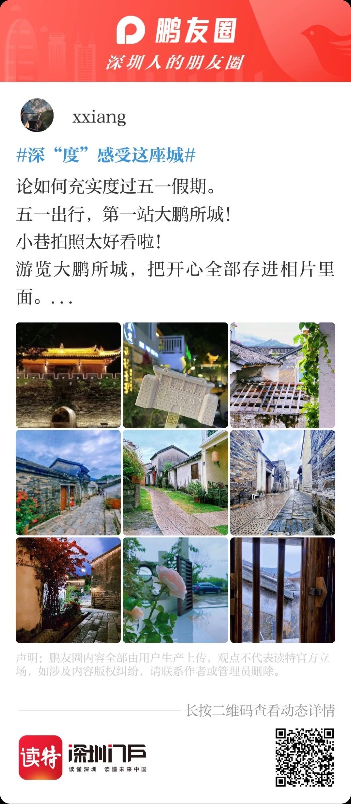 如果你也想要給大家分享五一深圳好去處,可以參與以上話題活動,來鵬友圈分享你的經驗,還能贏讀特1000積分和益生菌堅果!