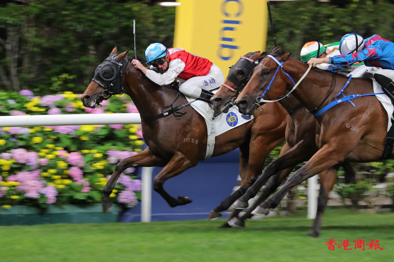 「萬眾開心」今仗續用冠軍騎師潘頓押陣,排在七檔起步,出閘主動擺前走,直路出頭貫注到底,最終以短馬頭位險勝「祥華孝寬」、「同盟力量」,勇奪冠軍,打開在港勝門。