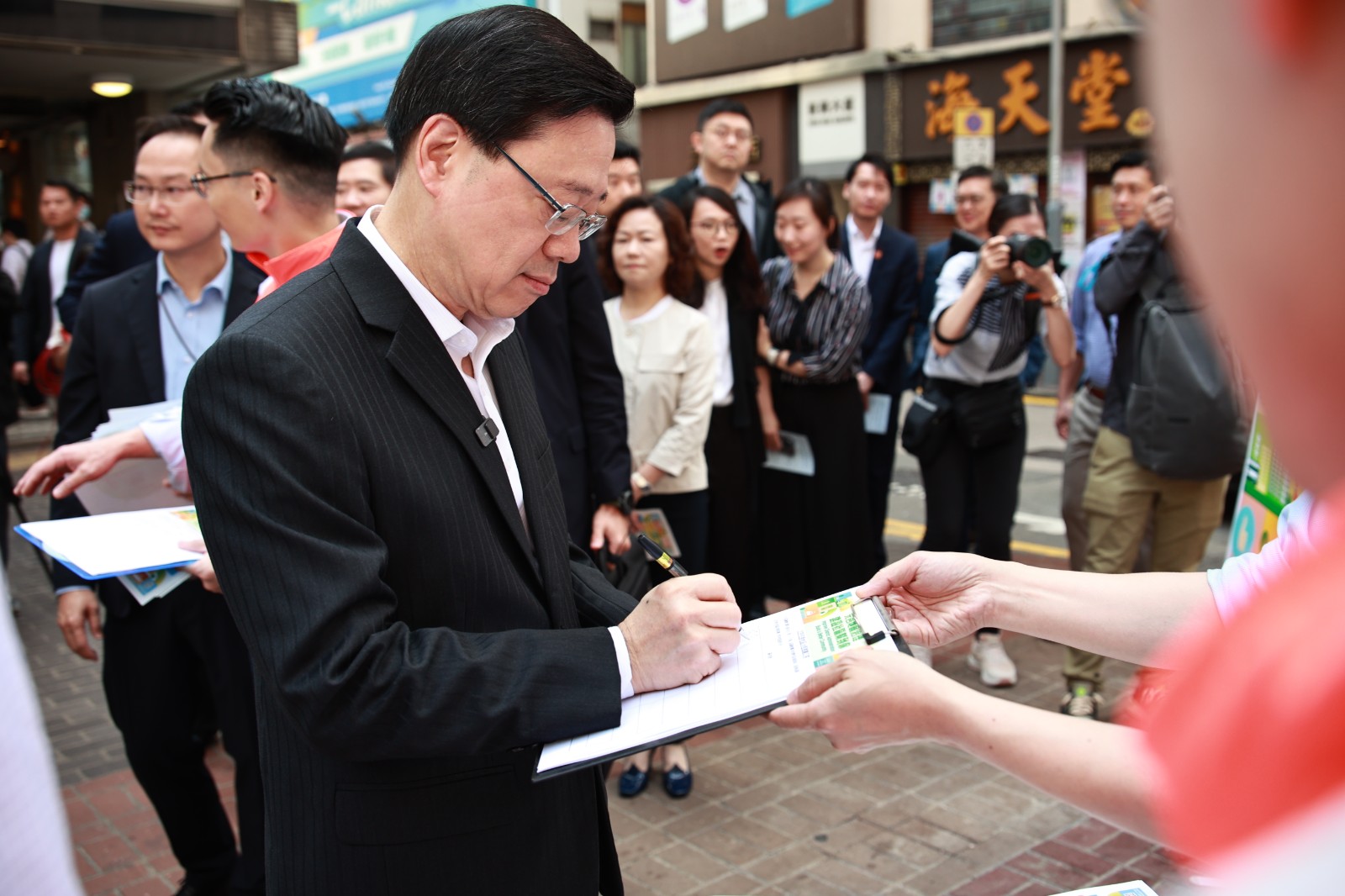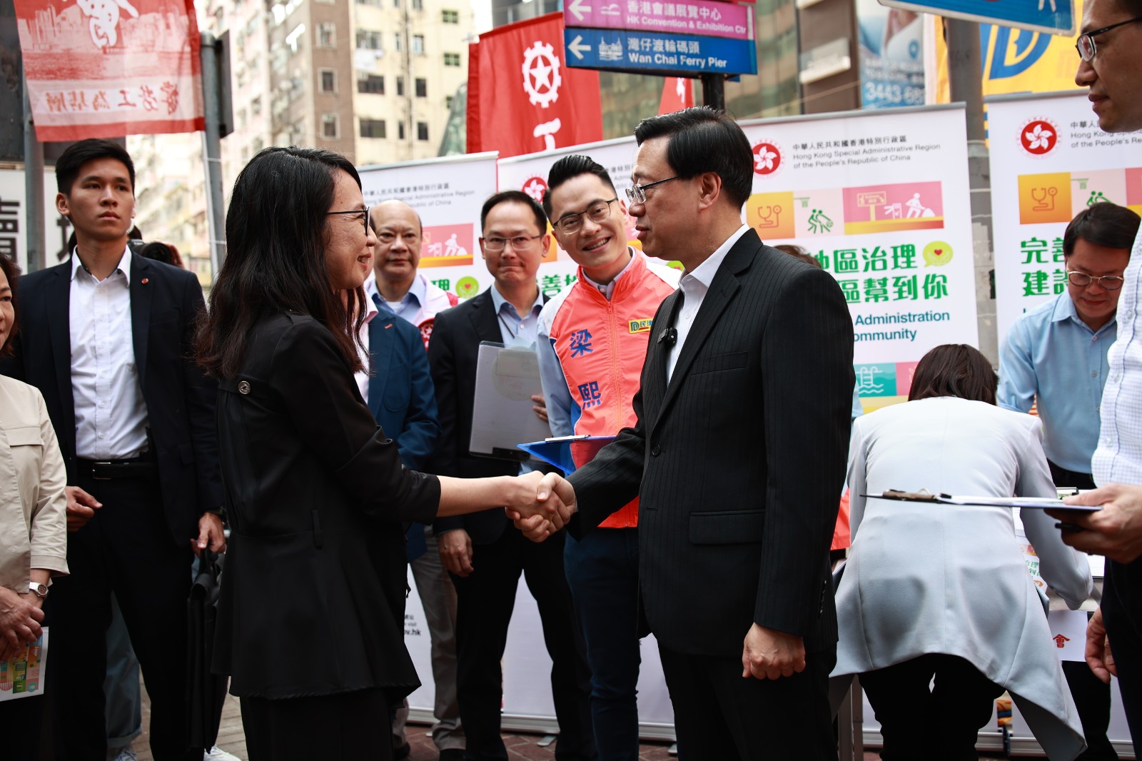 多個組織團體今日在全港不同地區擺設街站,宣傳政府剛公布的完善地區治理建議方案,收集廣大市民支持方案的簽名。李家超在社交媒體發文表示今早回辦公室前去到其中一個街站表示支持,並親自感謝自發幫助特區政府宣傳方案的義工,為他們「打打氣」。