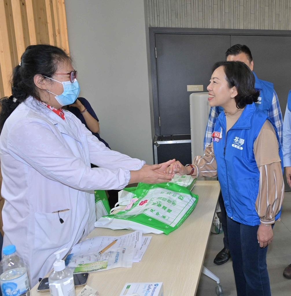 民政及青年事務局局長麥美娟在典禮後視察「關愛隊」為區內居民提供的身體檢查服務。