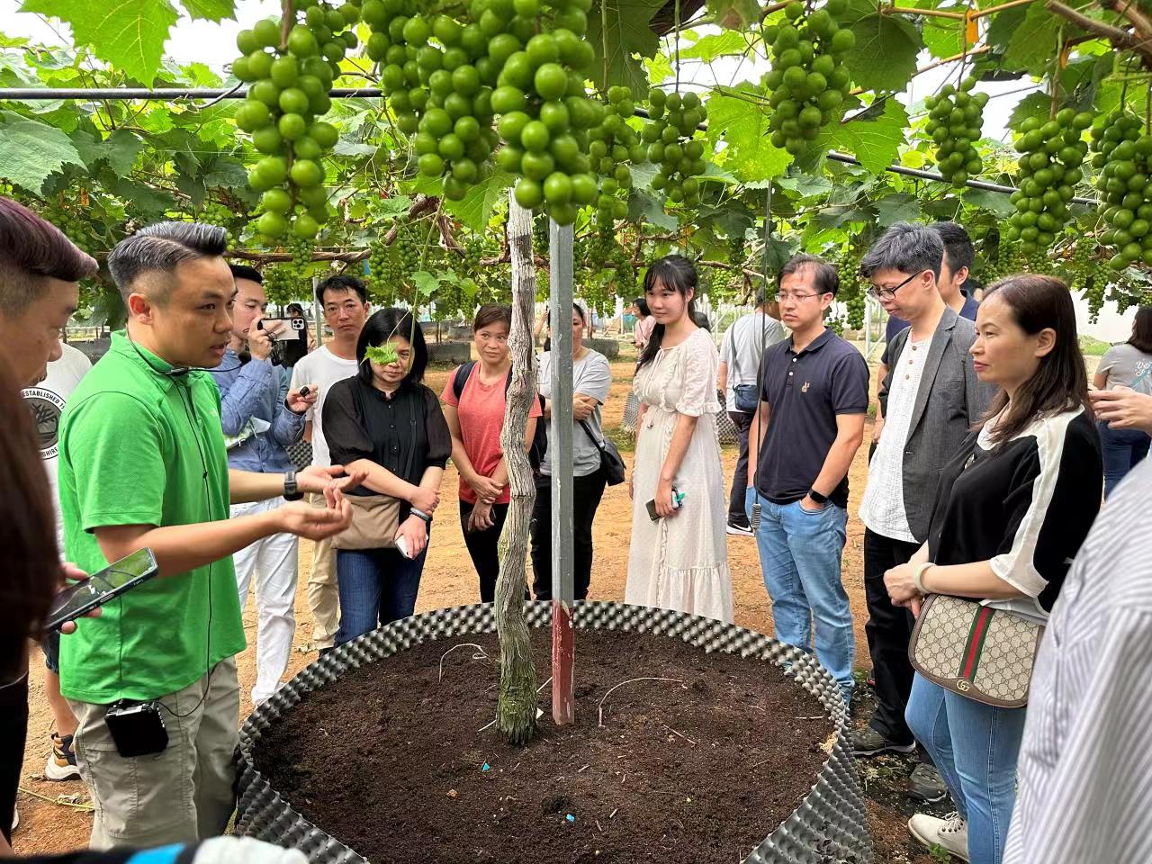 活動中,百名香港莞籍社團青年到「現代農夫」實地參觀,了解企石鄉村振興發展情況。「現代農夫」由東莞市東部農業科技有限公司創建,5位留學青年用相同理念一起當起了現代農民,是東莞首個留學生創業就業示範基地。
