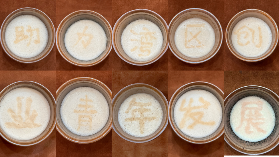 當天,大家還共同參與了宋代點茶文化活動,宋代點茶在中國茶道史上具有極其重要的地位,點茶是宋代鬥茶所用的方法,茶人自己飲用亦用此法。在快雪堂文化中心茶藝老師帶領下,各位青年認真學習,有板有眼。從將茶碾成細末,置茶盞中,再以沸水點沖,大家齊心合力,共同「點」成:「助力灣區創業青年發展」,並紛紛表示:茶文化是高雅的文化,是中華民族優秀文化,以茶會友,廣交好友,要為推動茶文化的發展做出更大的貢獻。