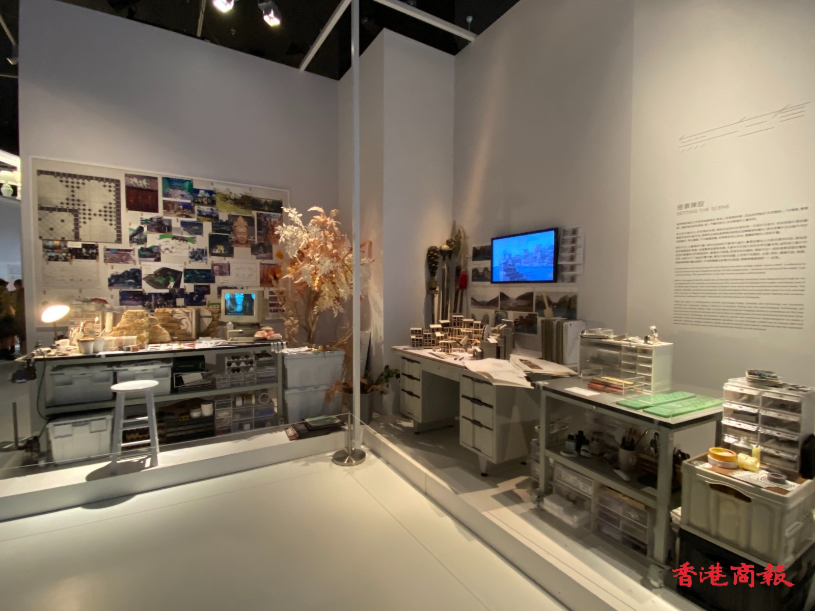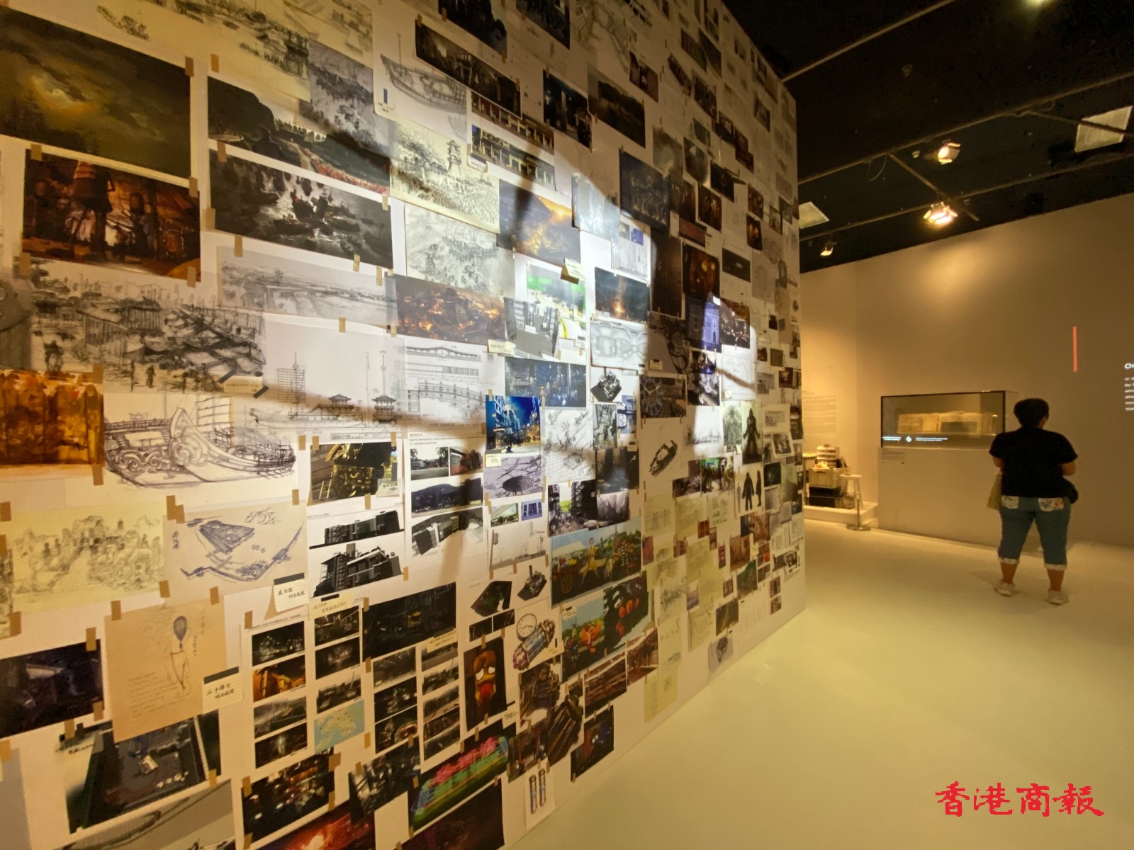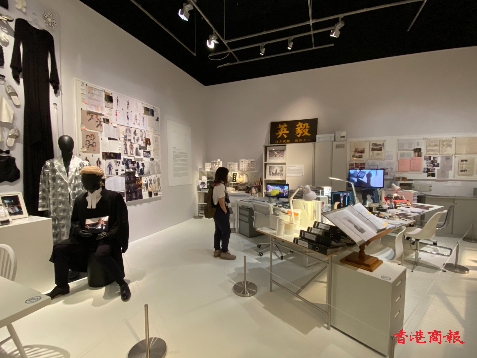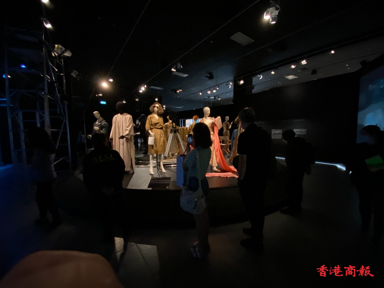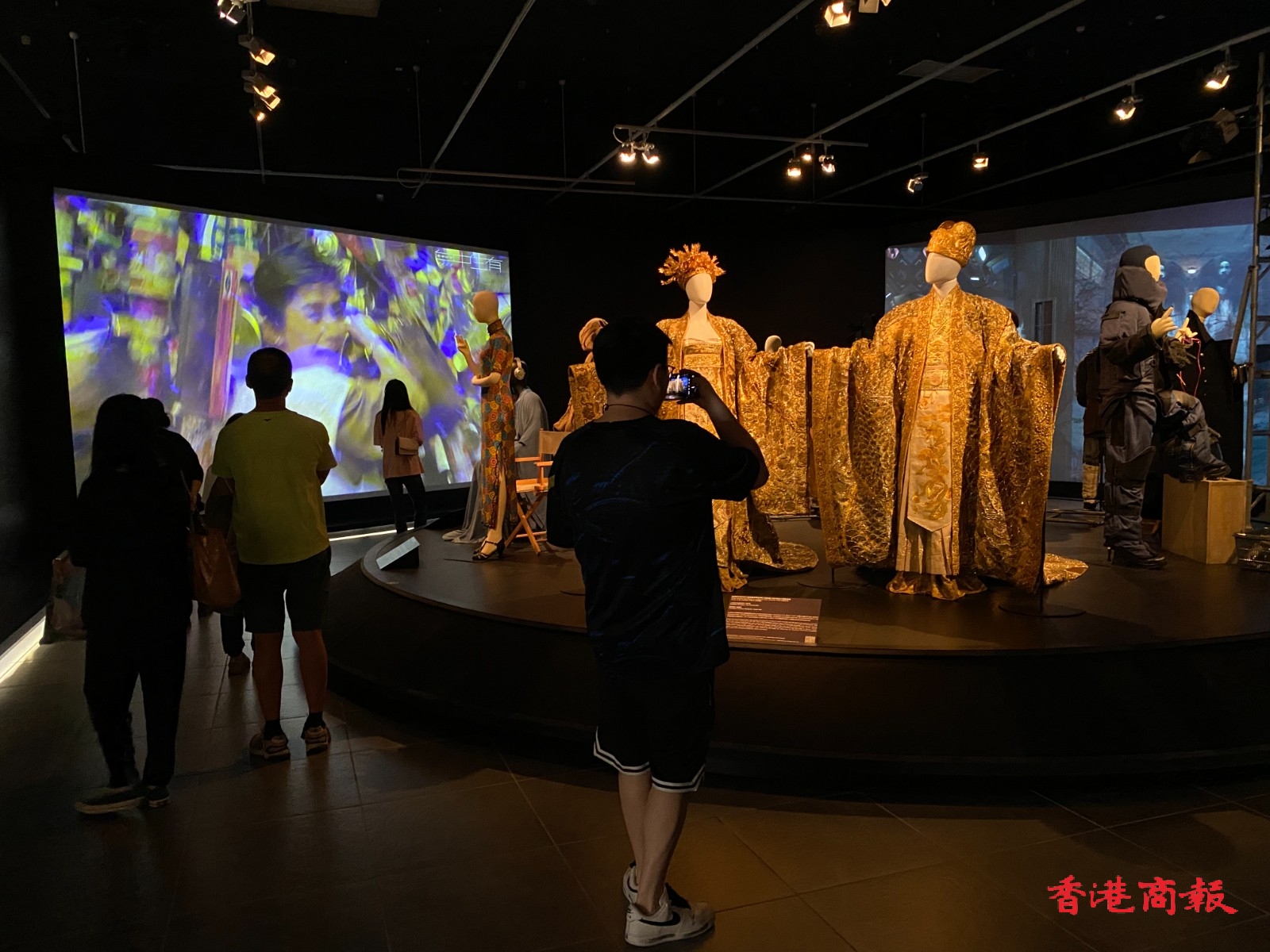有關道具的展品則有邵氏電影製片廠布景設計資料冊;《千機變》(2003)中的殭屍獵人劍;《狄仁傑之神刀龍王》(2013)中的特別道具「水中馬」、《西遊・降魔篇》(2013)中的《兒歌三百首》、《殭屍》中的道具羅庚等。主辦機構更精選了過百個電影片段,製作成《香港電影及服裝造型精華巡禮》在展覽場館內播放,展示香港電影美術及服裝造型指導多年來的優秀作品。(俊文 攝)