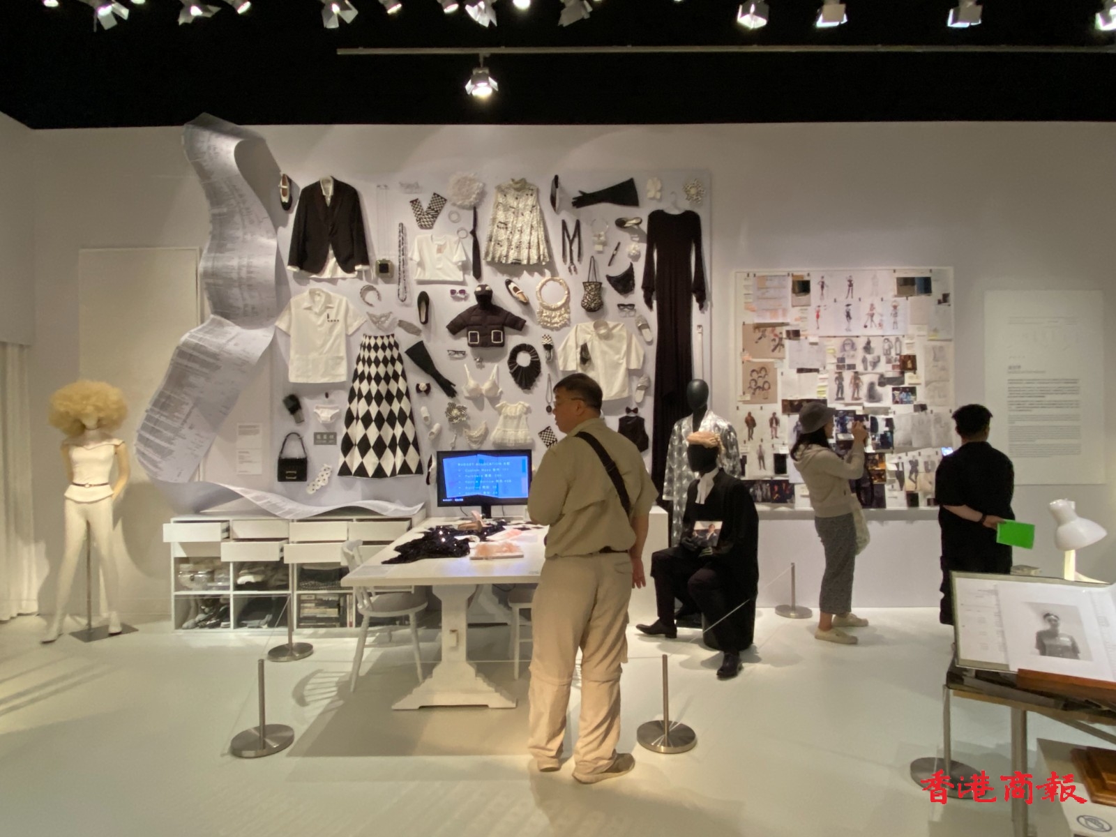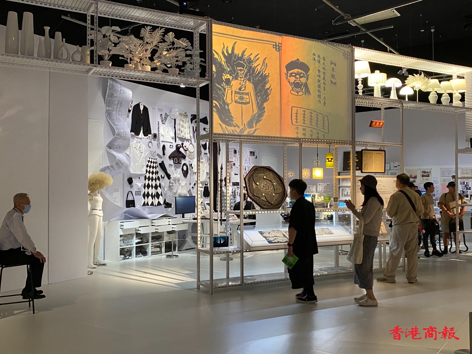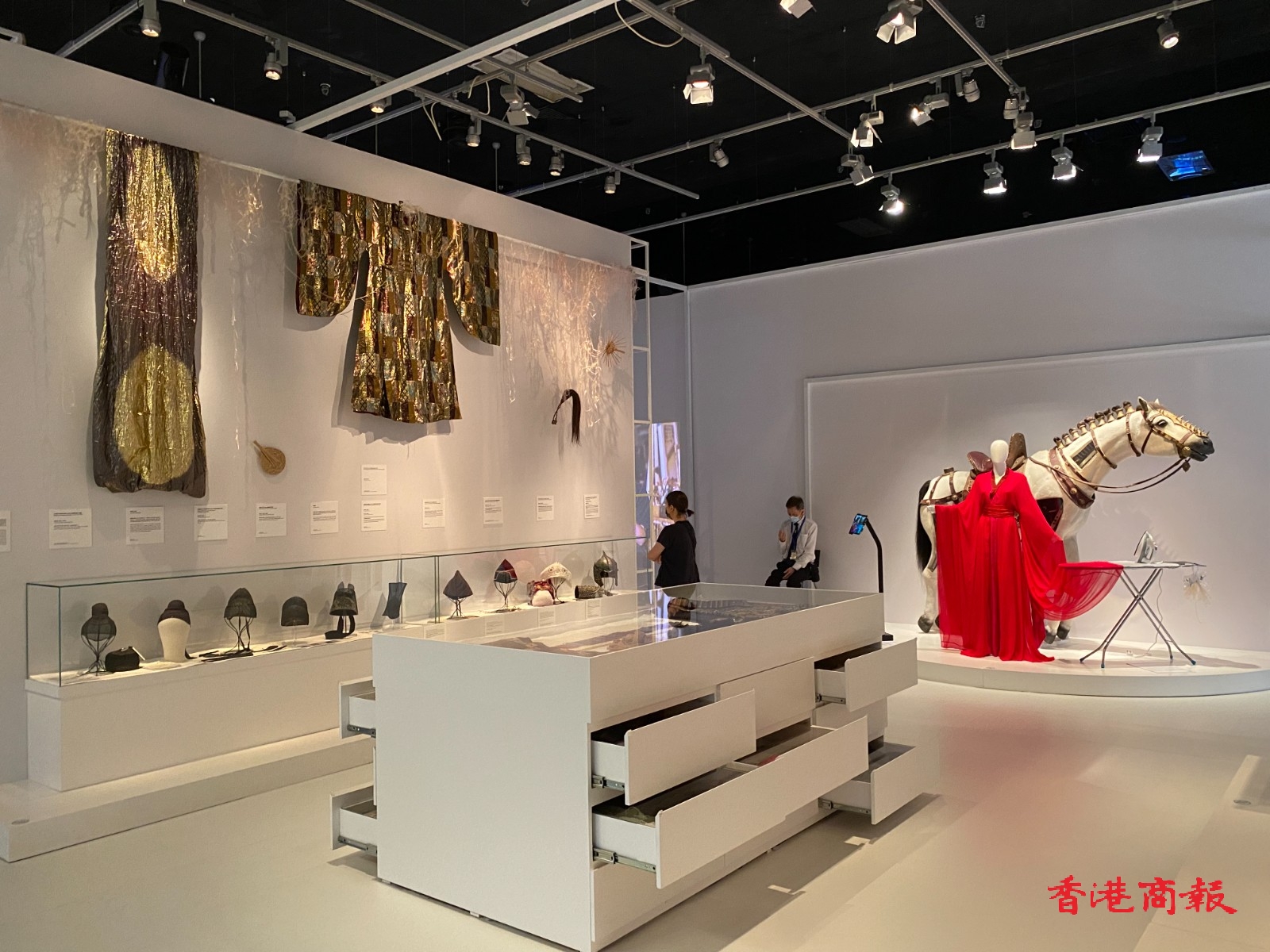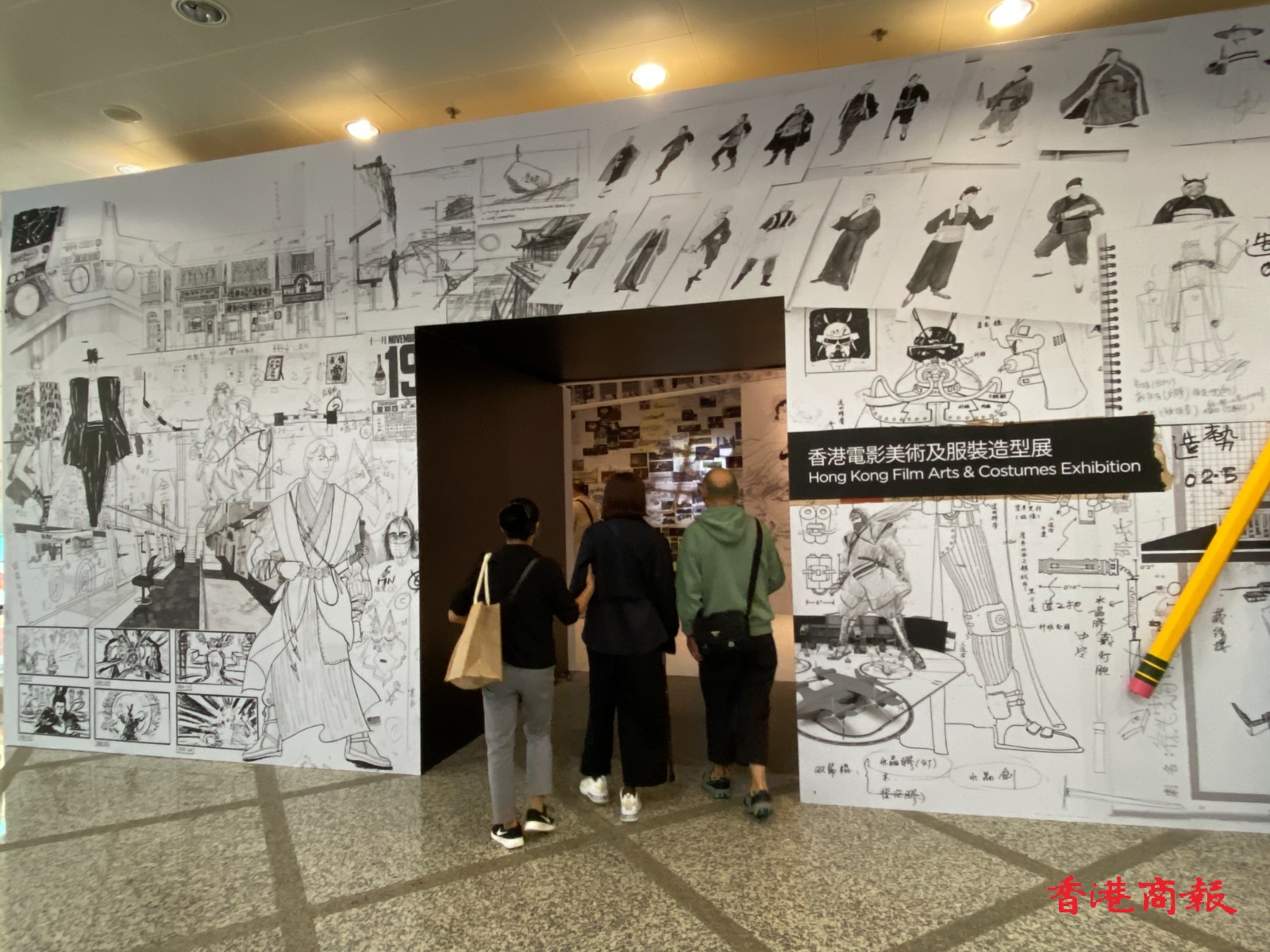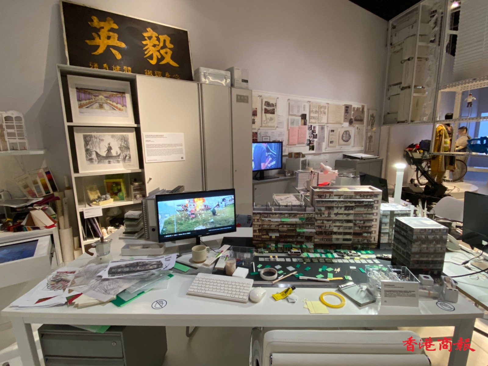 有關道具的展品則有邵氏電影製片廠布景設計資料冊;《千機變》(2003)中的殭屍獵人劍;《狄仁傑之神刀龍王》(2013)中的特別道具「水中馬」、《西遊・降魔篇》(2013)中的《兒歌三百首》、《殭屍》中的道具羅庚等。主辦機構更精選了過百個電影片段,製作成《香港電影及服裝造型精華巡禮》在展覽場館內播放,展示香港電影美術及服裝造型指導多年來的優秀作品。(俊文 攝)