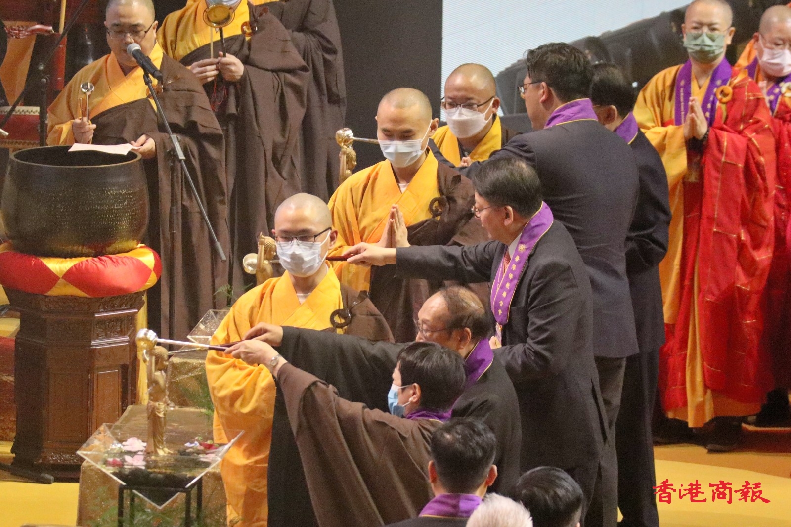 浴佛大典暨「祝福香港」吉祥法會於今日下午3時舉行,近8000名市民出席。政務司司長陳國基、中聯辦副主任尹宗華,以及民政及青年事務局副局長梁宏正出席並擔任主禮嘉賓,與香港佛教聯合會會長寬運法師一同敲響吉祥鐘,借以祝願佛光普照、天下太平、祖國富強、人民幸福,香港社會繁榮,市民安居樂業。