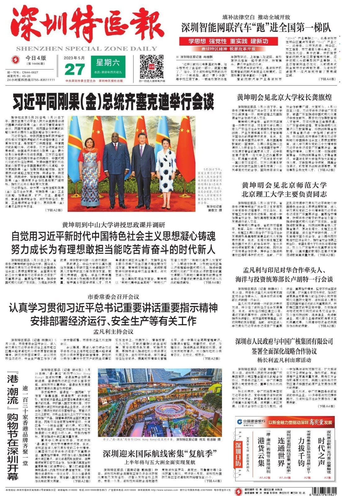 5月26日晚,「港·潮流」購物節(Chic Hong Kong)在深圳開幕,深港消費合作取得新進展。香港特別行政區行政長官李家超,深圳市市長覃偉中,香港貿易發展局主席林建岳出席活動並致辭。