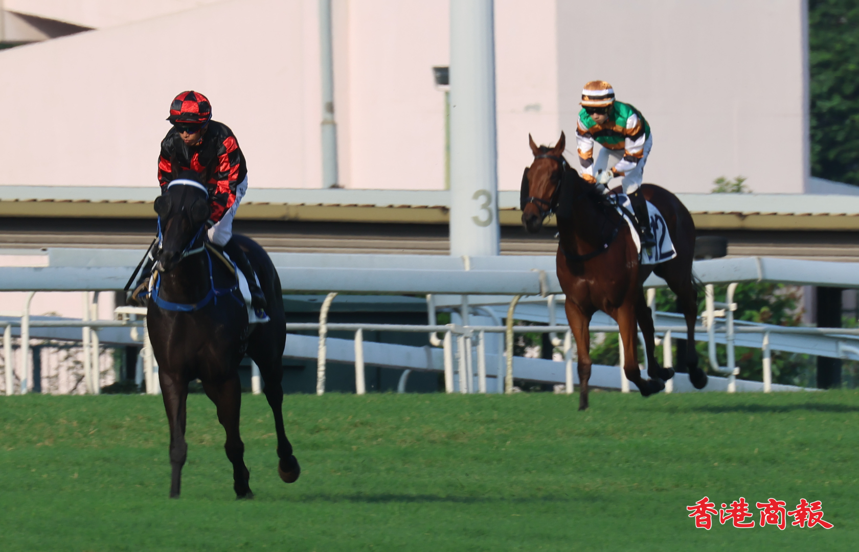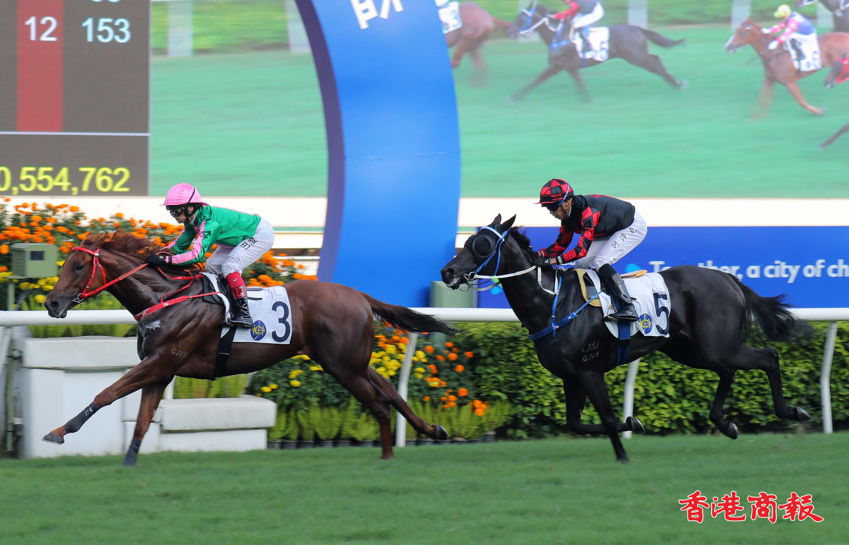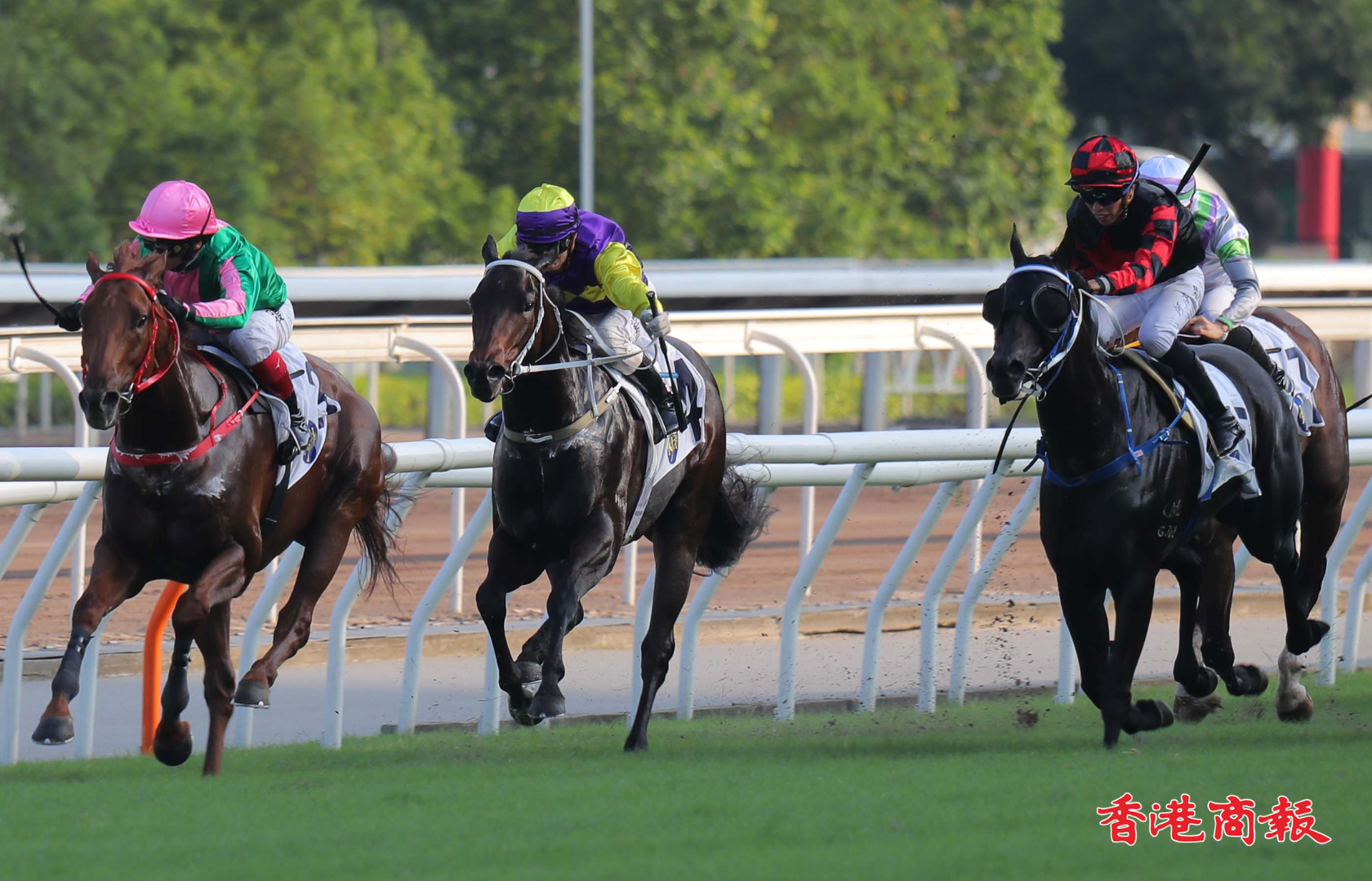 賽事展開,郭氏夫婦與兩名囡囡一齊到馬主廂房欄邊觀戰。兩名囡囡身穿花裙、同樣戴上太陽眼鏡,並手持賽馬公仔,相當可愛。「舞林密碼」出閘處身前列,直路發力衝刺,可惜已被領放馬「魅力寶駒」走甩,最終繼上場直路賽之後,再次屈居亞軍,仍與勝仗無緣,城城賽後多少帶點失望,要拉頭馬唯有等下一場了! (文、圖、影片:志誠)