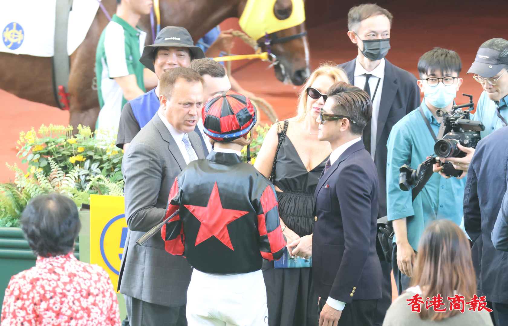 在賽事開跑前,城城與方媛一齊到馬匹亮相圈睇馬,並與練馬師方嘉柏、騎師何澤堯交談一輪,城城表現親民,同場不少馬主上前要求合照,都是來者不拒。被問及爭勝信心,城城握著拳頭並說「盡量」。