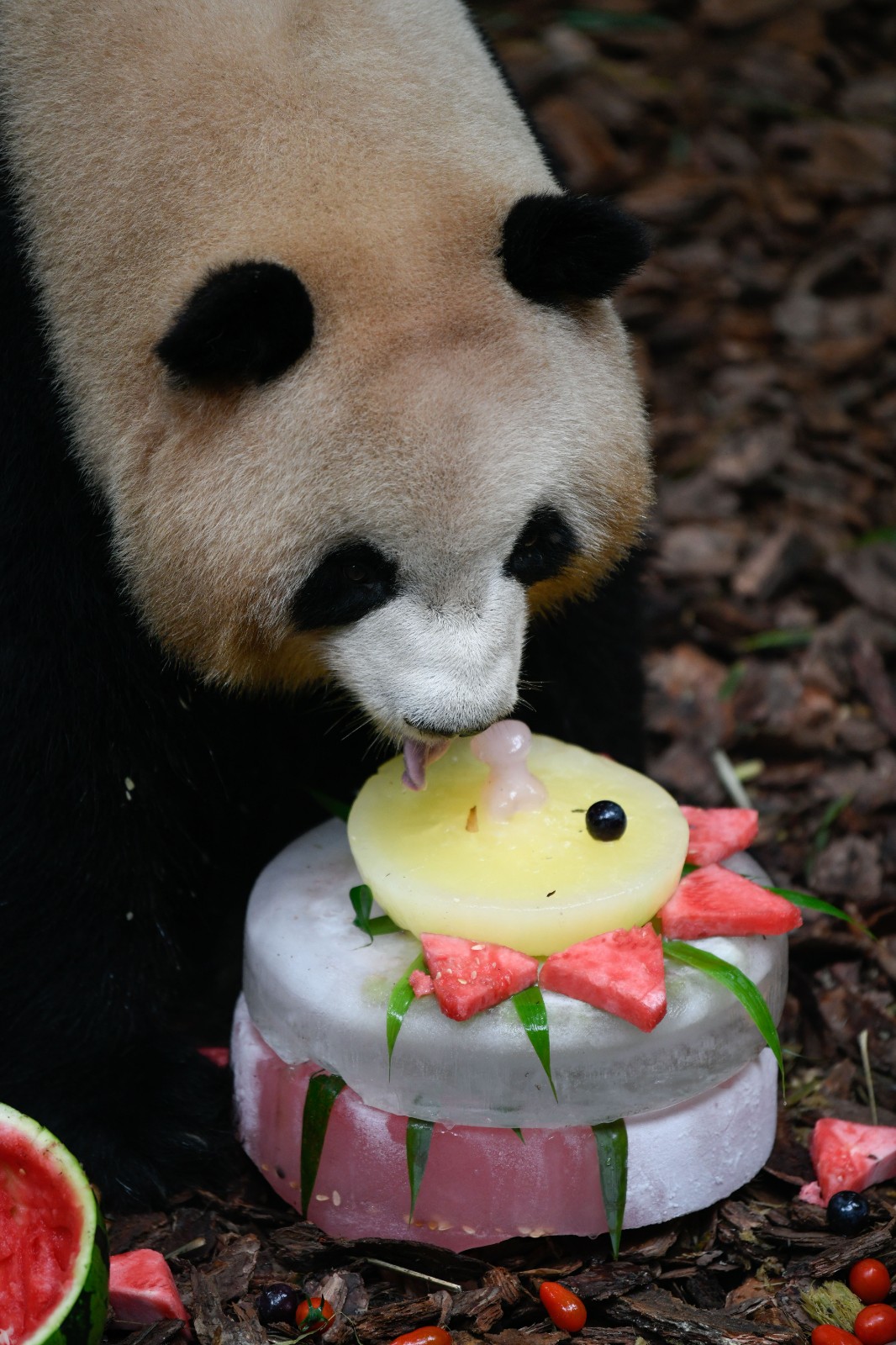 5月29日,大熊貓梅蘭迎來7歲生日,成都大熊貓繁育研究基地都江堰野放繁育研究中心為它準備了生日大餐。