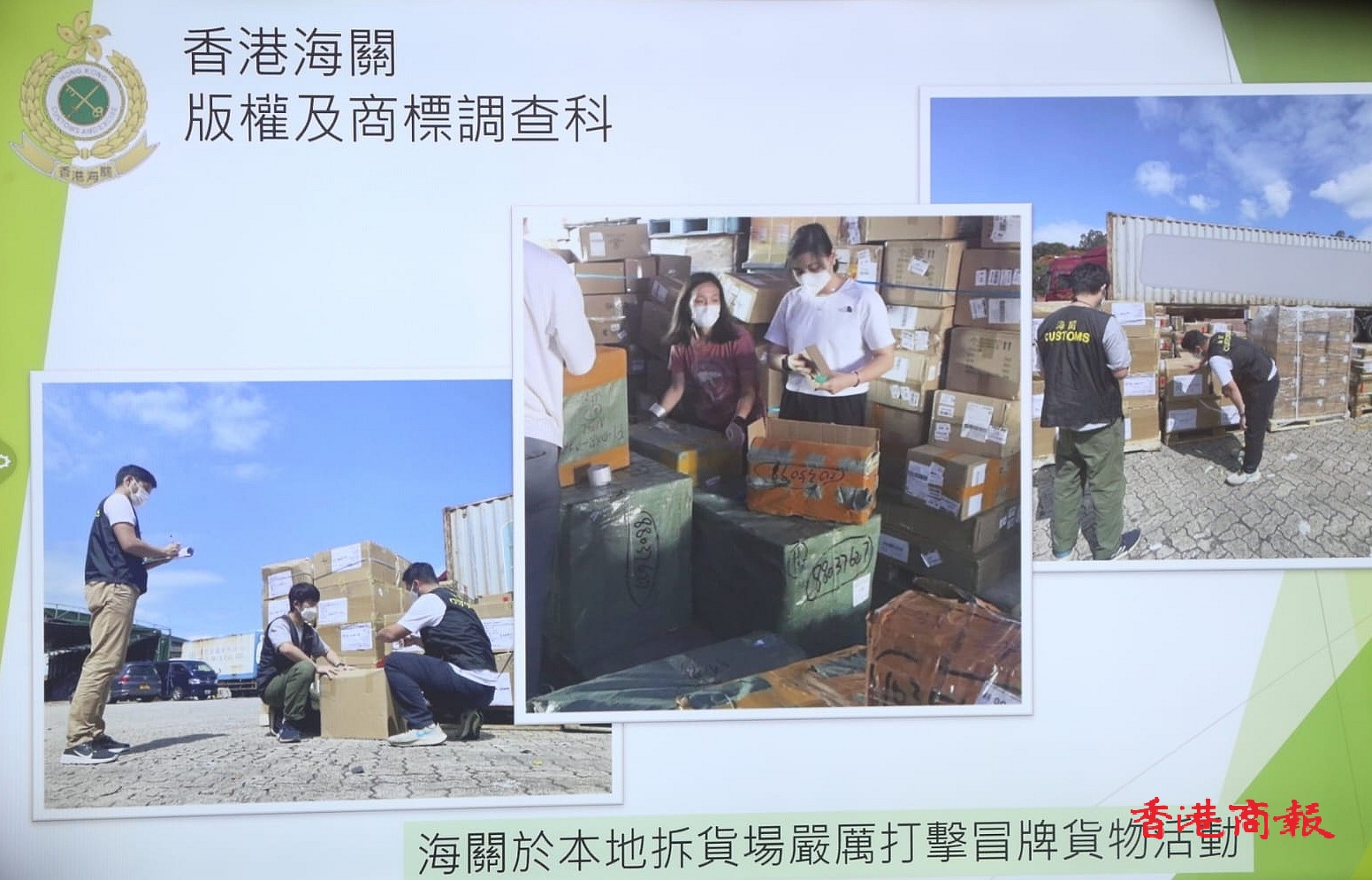 海關版權及商標調查科版權及商標跨境調查組指揮官楊元昇今早(2日)在記者會上表示,海關一直打擊各類侵權活動,除在邊境口岸打擊進出口的貨物外,亦經常巡查全港各區俗稱拆貨場的物流公司,在物流業的運作上各層面以全方位的堵截冒牌物品。
