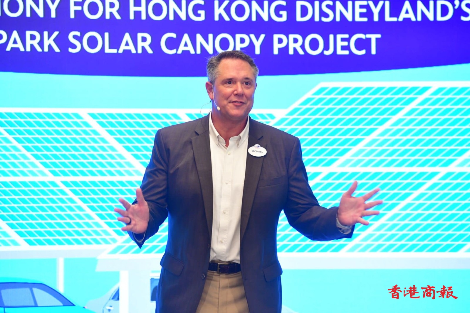 香港迪士尼樂園度假區行政總裁莫偉庭指,迪士尼相信保護環境是公司其中一個核心理念,停車場太陽能項目將是迪士尼環保發展重要里程碑。項目將有超過400塊太陽能板,每年可產生超過20萬度電,更是香港首個太陽能停車場項目。他更感謝特區政府對太陽能項目的支持。