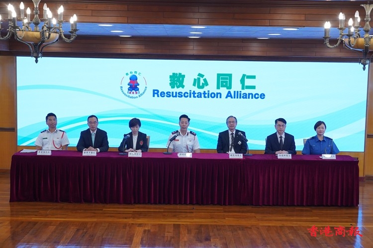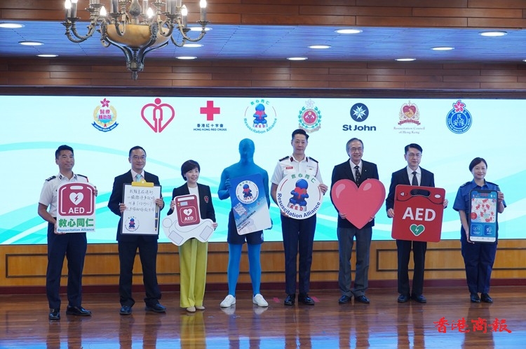 郭柏超、香港聖約翰救護機構理事會主席鍾展鴻、香港紅十字會行政總裁蘇婉嫻、香港心肺復蘇委員會會長林建群、東區醫院急症科署任部門主管蕭粵中、民眾安全服務處參事崔嘉儀和醫療輔助隊參事李家強進行啟動儀式。