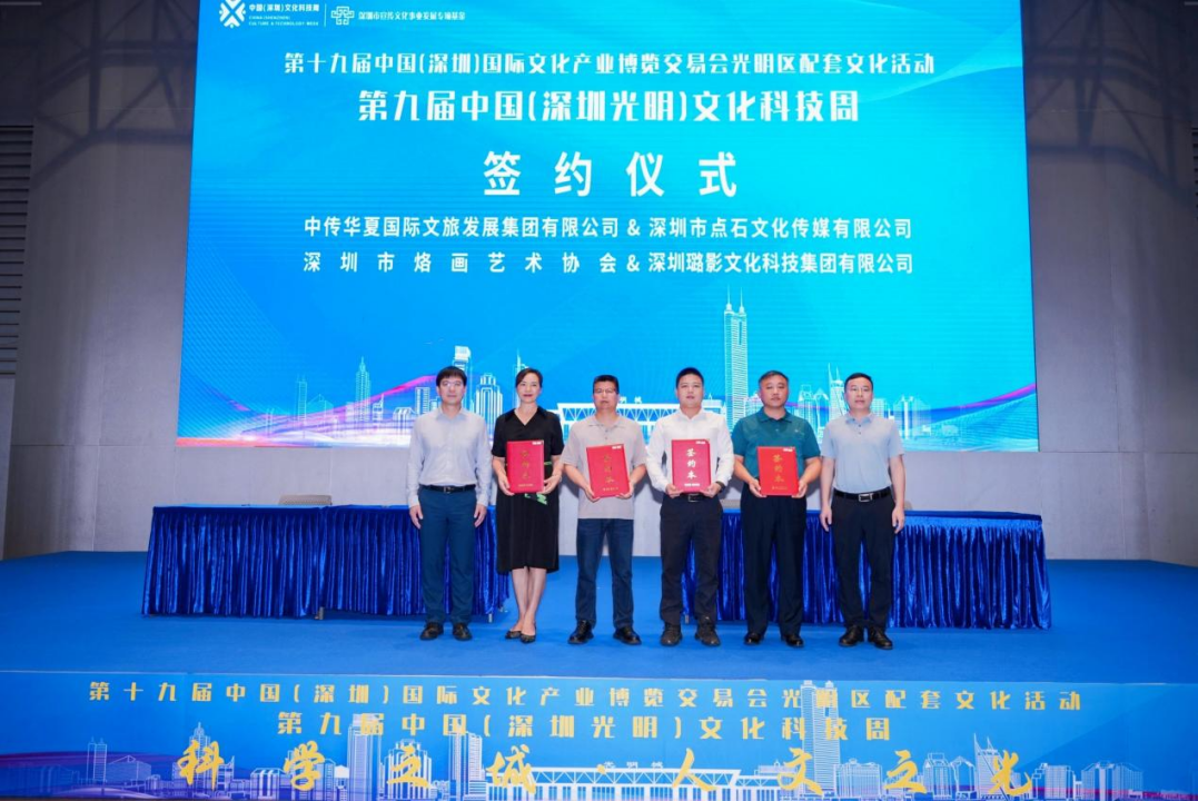 開幕式當天,還舉行了項目簽約儀式與優質項目路演。中傳華夏國際文旅發展集團、深圳市點石文化傳媒有限公司、深圳賽美思高科有限公司等8家企業分別進行了戰略簽約。各方將以簽訂戰略合作協議為契機,在數字藝術、文化創意、文旅融合等方面展開深入合作。