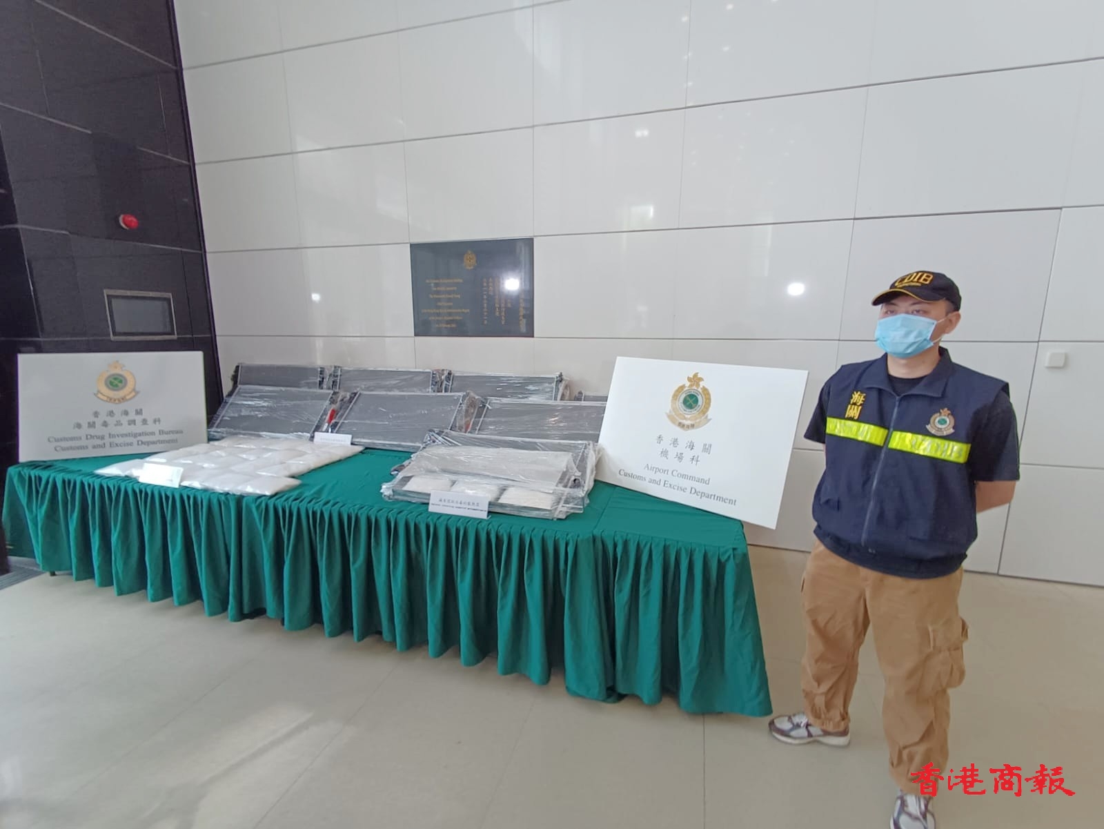 海關偵破空運貨物運毒案,海關毒品調查科機場調查課高級調查主任鄒永昌今日(14日)表示,機場科人員在前日(12日)透過風險評估,揀選和查檢一批共8箱由墨西哥進口報稱是散熱器的空運貨物。由於墨西哥屬高風險地區,根據紀錄該批貨物的寄貨商人在近年只得數次空運貨物到香港,而本地收貨人地址是位於屯門住宅單位,以住宅收取大型的貨物較少見,引起人員懷疑。