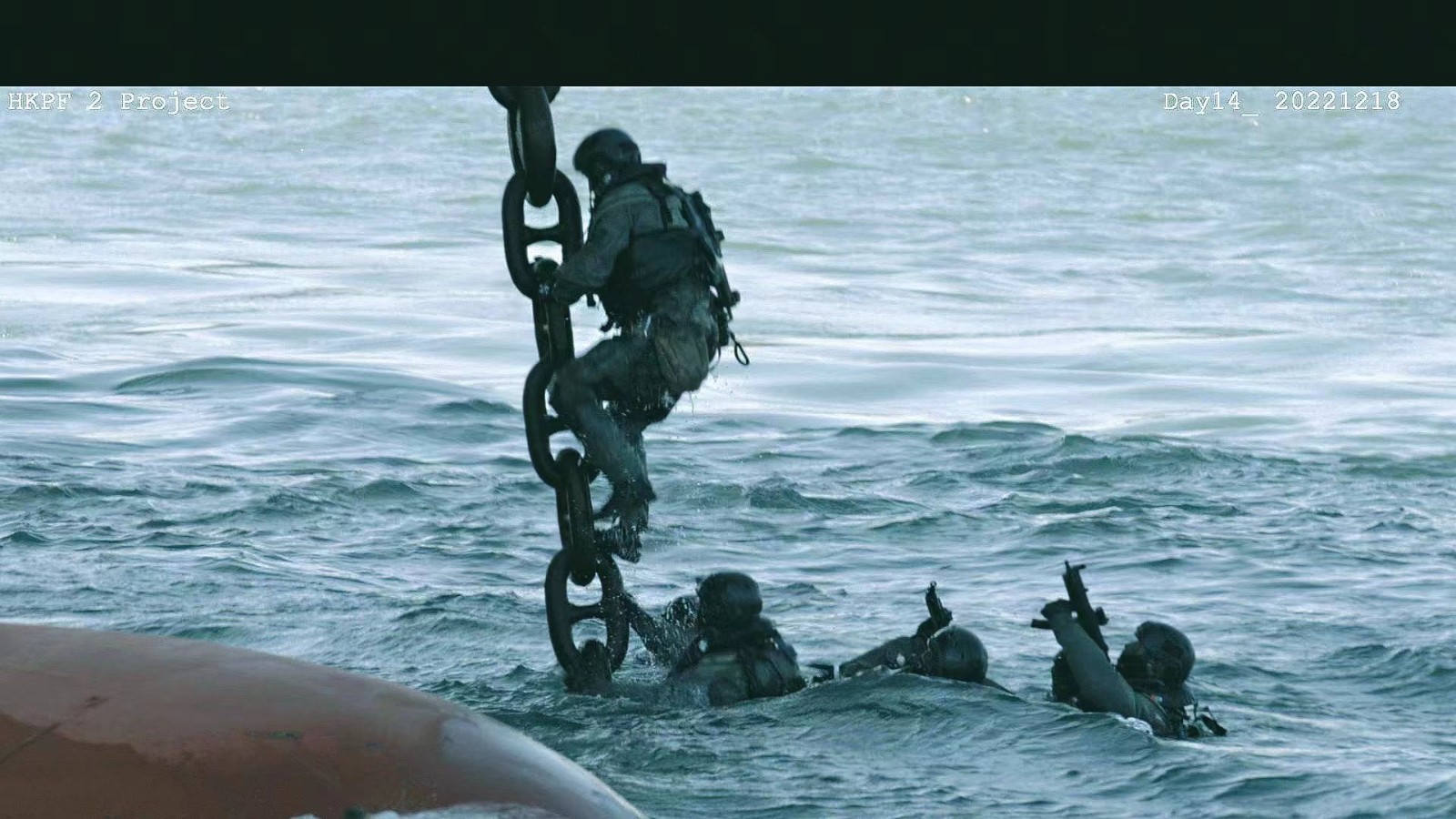 林導亦難忘貨輪拍攝場景,因拍攝之前幾日,天氣惡劣,而拍攝的貨輪亦只可供拍攝一天,無法改期,更遇上香港全年最寒冷的幾天,氣溫只有6度,飛虎隊潛水員更要長期在低溫海水中參與拍攝,難度極高。可幸在海陸空多支部隊、船公司及其他參與機構努力協調下,總算順利完成拍攝,用一天時間成就宣傳片其中一場重頭戲。