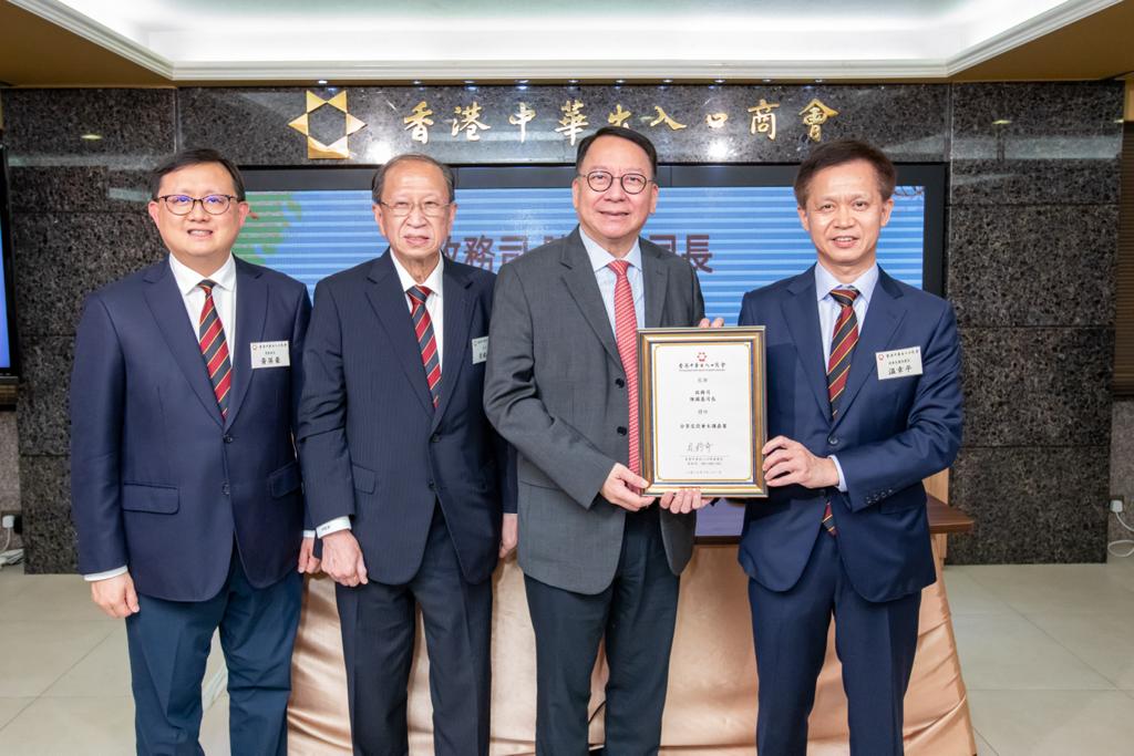 香港中華出入口商會(中出商會)昨日(21日)邀請到政務司司長陳國基,擔任分享交流會主講嘉賓,就政府目前正在推動的主要工作,特別是搶人才、各行各業請人難的政策和對策作分享,並與出席的會董及會員作充實交流。