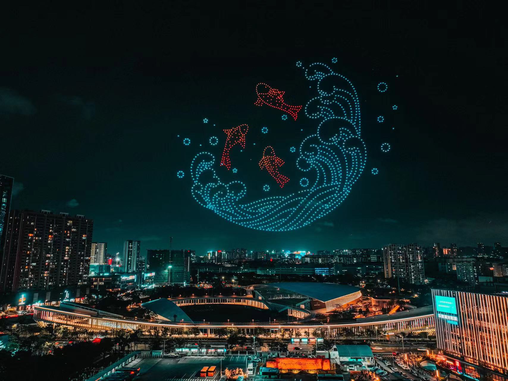本次無人機主題表演為2023深圳市龍舟文化藝術節重要活動之一,18日晚,1500餘架無人機,史上最奢侈的大面積單畫3D高時長展現飛龍在天,19日主題展演則共設置生命之源、金色傳說、生意盎然、奮鬥未來、星河璀璨等五大篇章。表演先後呈現魚—鯤—鵬、龍—龍舟、枝條萌發龍華地標、數字科技等具有龍華特色的主題畫面,講述關於百舸爭流·奮進龍華的人文故事,展現深圳與龍華一往無前、奮勇爭先的競進姿態和集「體育精神、人文歷史、地域特色」於一體的宏偉畫卷,實現現代視覺藝術、傳統文化精神與高新科技的完美融合。同時通過高科技效果呈現,吸引了眾多市民欣賞、拍照,也向市民群眾演繹數字科技與藝術融合帶來的視覺震撼與衝擊。