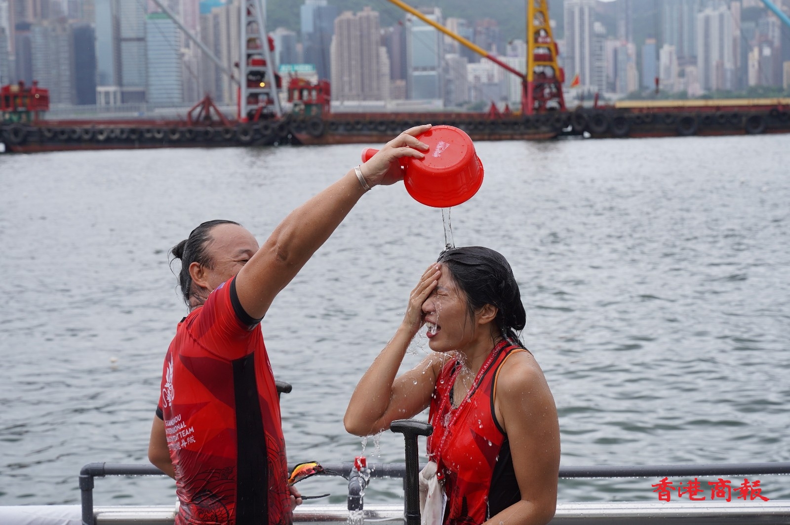 彭耀佳、立法會議員霍啟剛、旅遊事務專員沈鳳君、中國香港龍舟總會會長勞鑑、香港旅遊發展局總幹事程鼎一、油尖旺民政事務專員余健強和中國香港龍舟總會名譽顧問梁毓偉先生進行點睛儀式,祝願風調雨順、笑口常開、龍舟帶來健康吉祥如意。