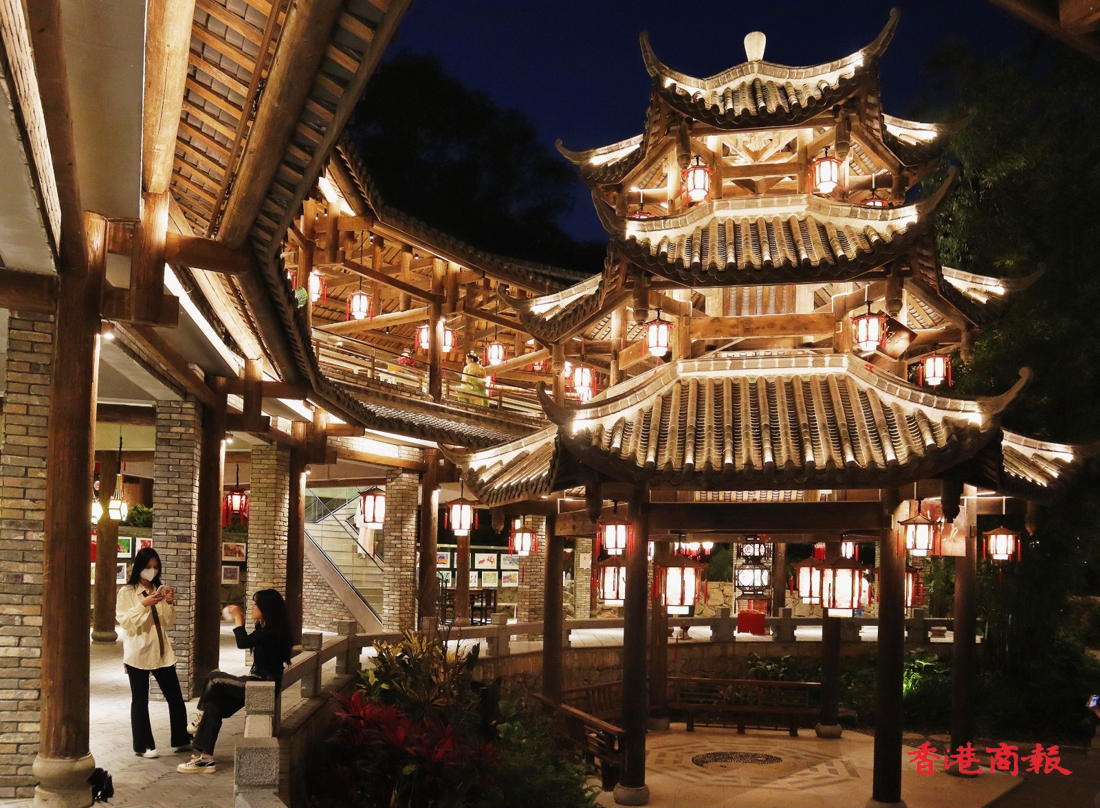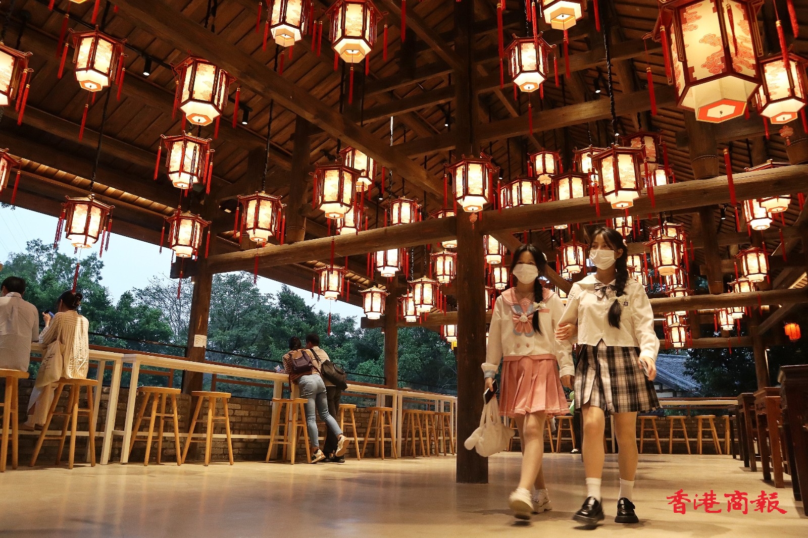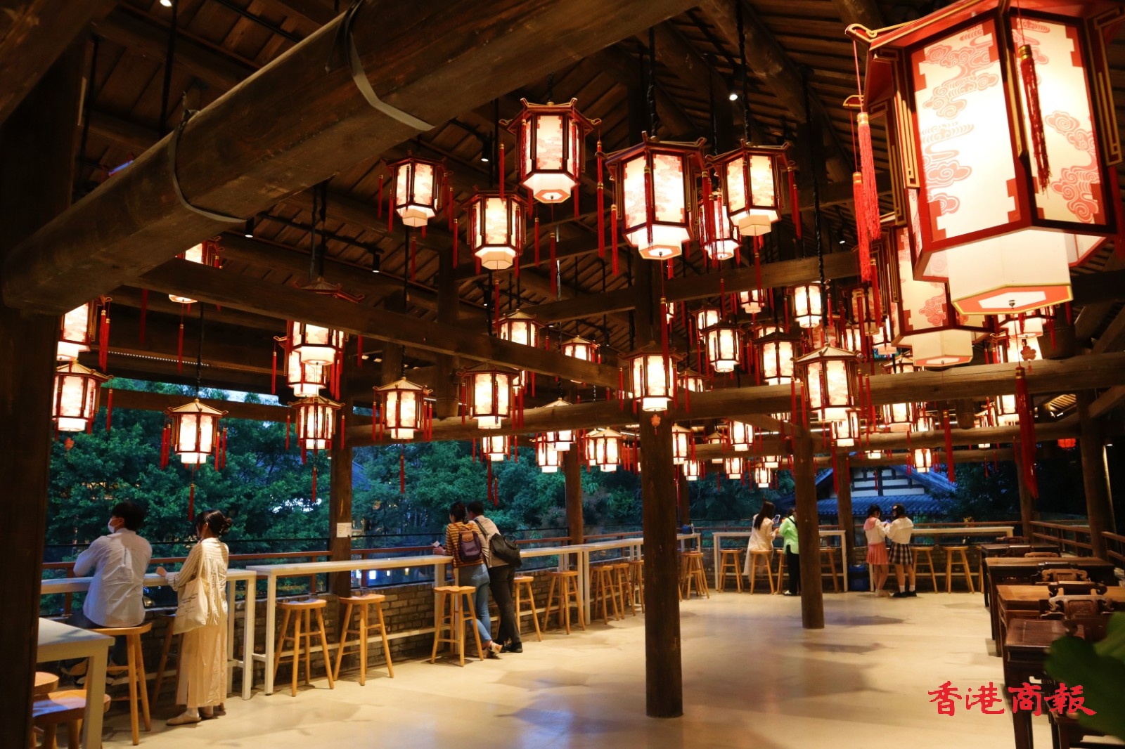 入夜後華燈初上,五光十色的宮燈滿布書院內,身穿漢服的小姐姐在書院內穿梭,遊客仿如古代。無怪乎有人評價「二十四史書院」為現實版的《夢華錄》,也有人評價它為「新晉國風打卡地」,更有人把它作為感受文人浪漫的好去處。(馮瀚文攝)