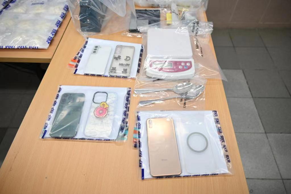行動中拘捕一名姓許(38歲)男子,當時疑犯從私家車搬運物件到另一輛車內,經搜查後,在疑犯身上及兩輛私家車內檢獲共6.54公斤氯胺酮、911.7克可卡因,以及一批包裝工具,包括熱熔封口機、電子磅和可再封膠袋等,毒品市值約500萬元。