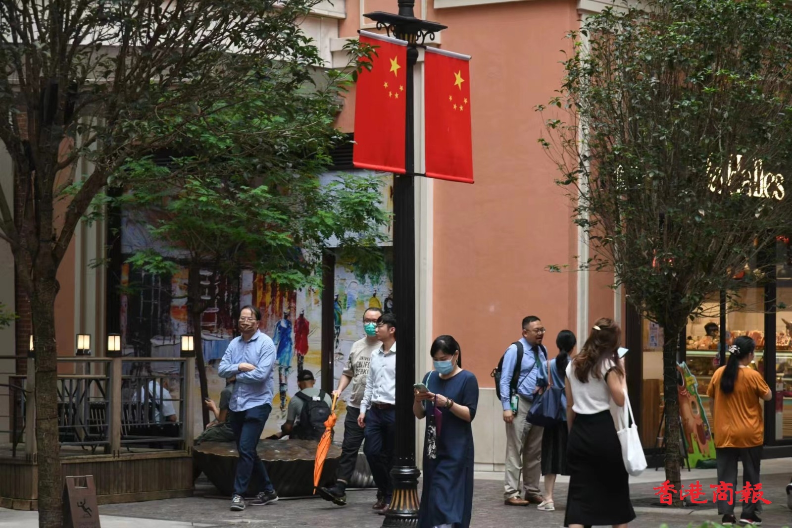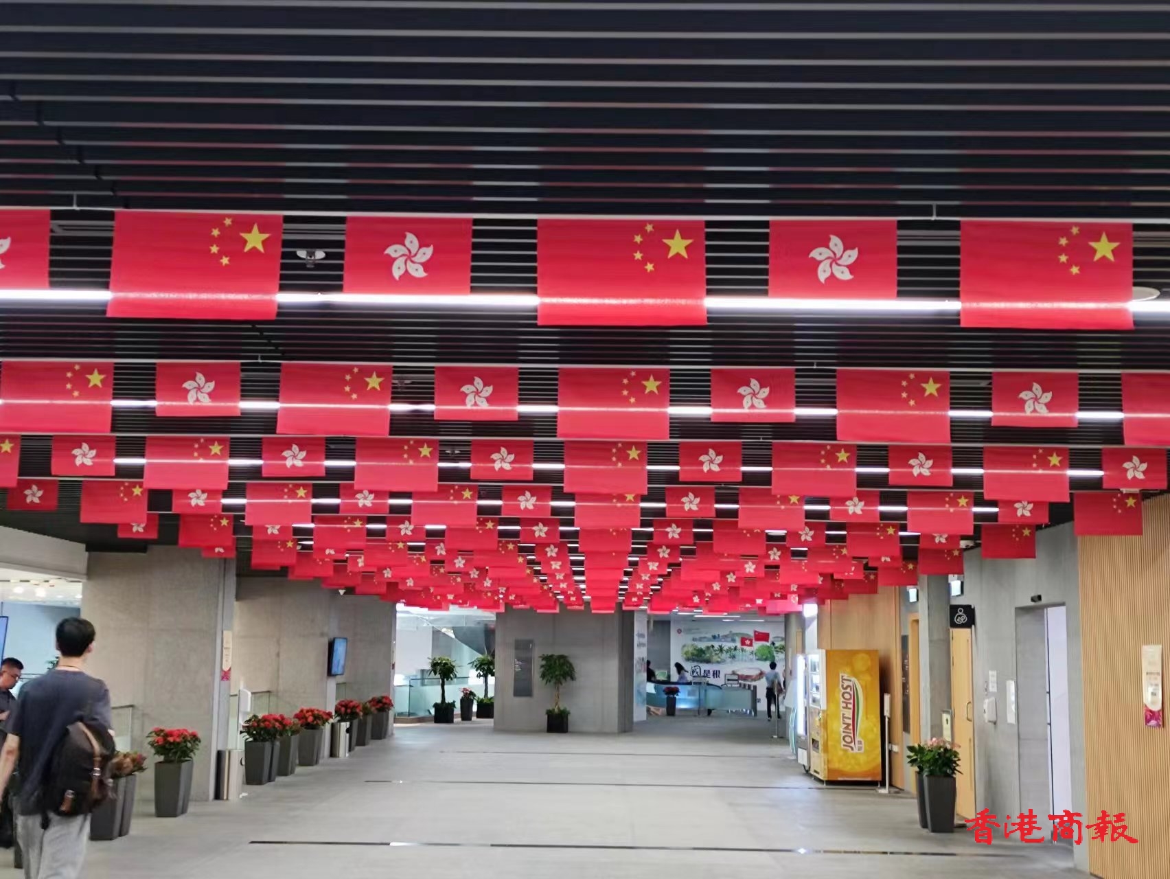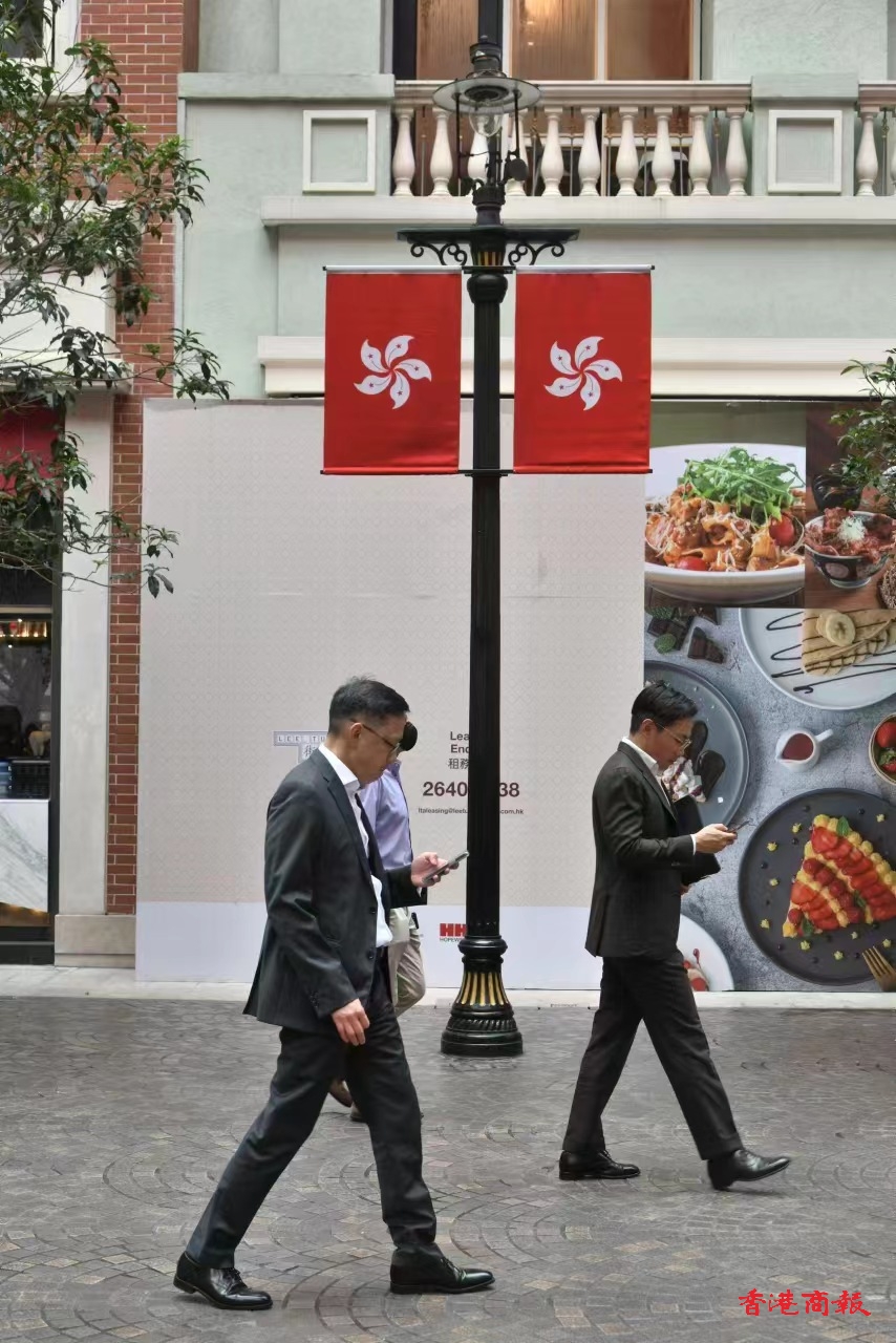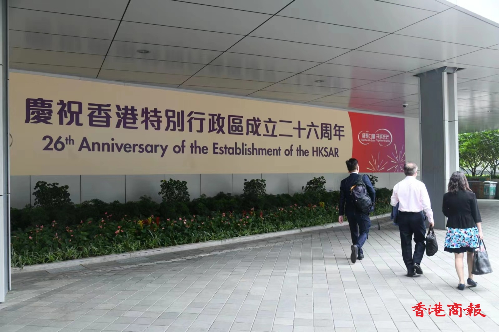 今年是香港回歸祖國26周年,也是香港特別行政區成立26周年,本港街頭一片喜慶氣氛。大大小小的街道掛滿了國旗和區旗,同時還有慶祝香港回歸祖國26周年的巨幅標語,市民可一同感受街頭的節日氣氛,體驗「旗海」現場。(記者 蔡啟文攝)