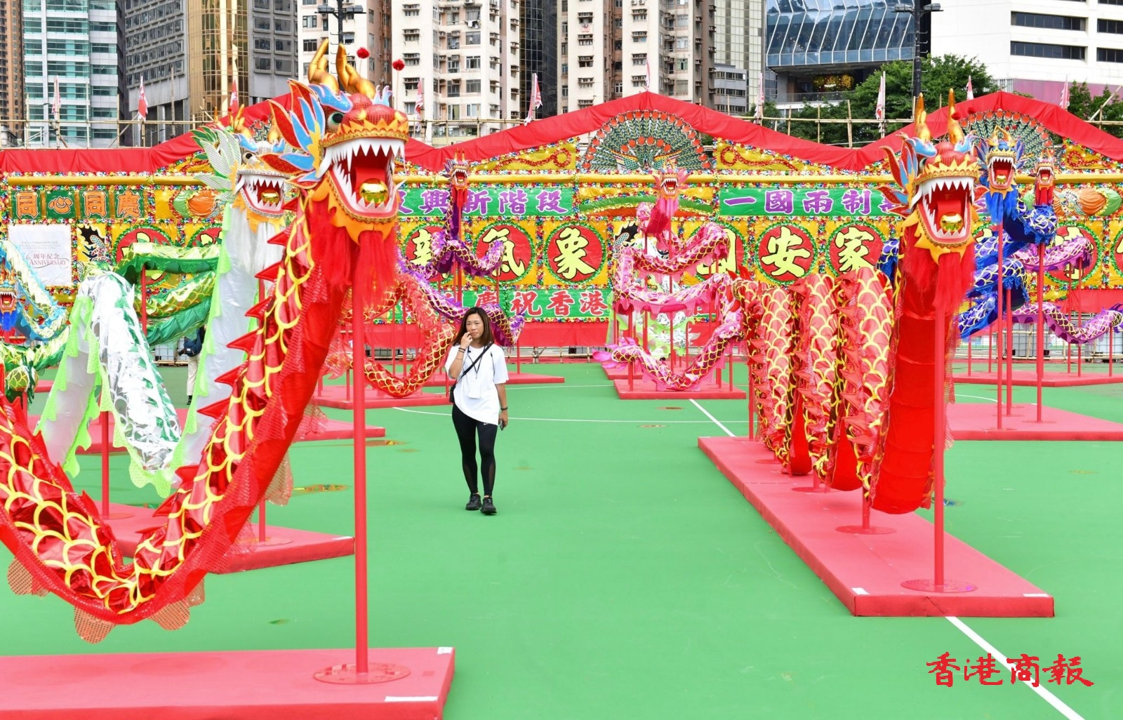 為慶祝香港回歸祖國26周年,香港各界慶典委員會(慶委會)由今日(30日)起一連3日在維園舉行「慶祝香港回歸祖國26周年」系列活動。「維園慶回歸」活動設有中華文化展區,當中分為陝西西安、遼寧和山東展區;另設「大灣區創新科技展覽」,多個創新科技前沿企業參展,展示創科成果。維園2號球場更設有打卡區,內有本地特色大型花牌配合26條傳統舞龍。