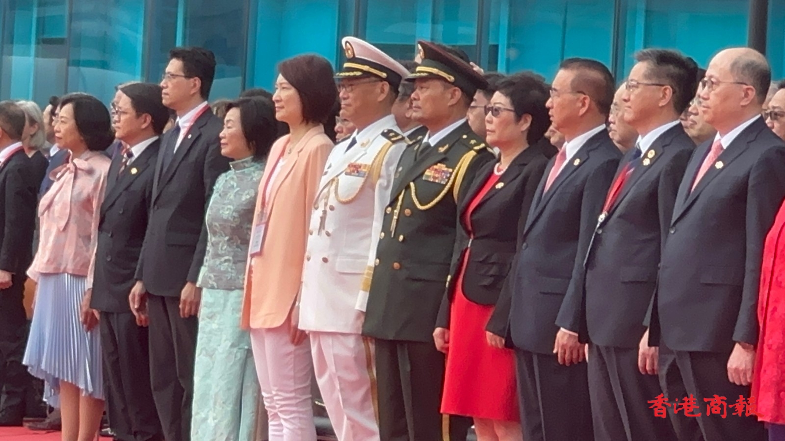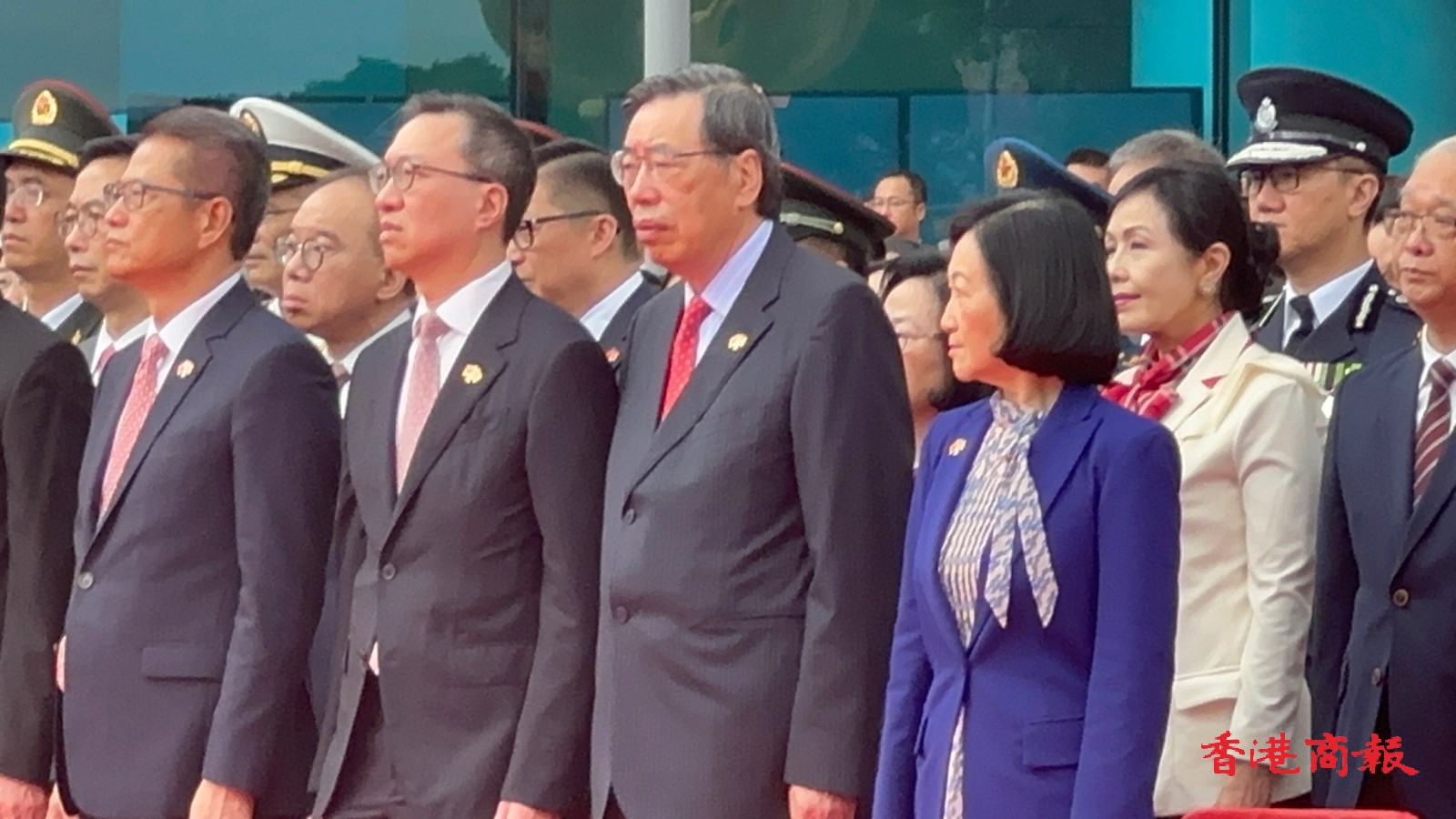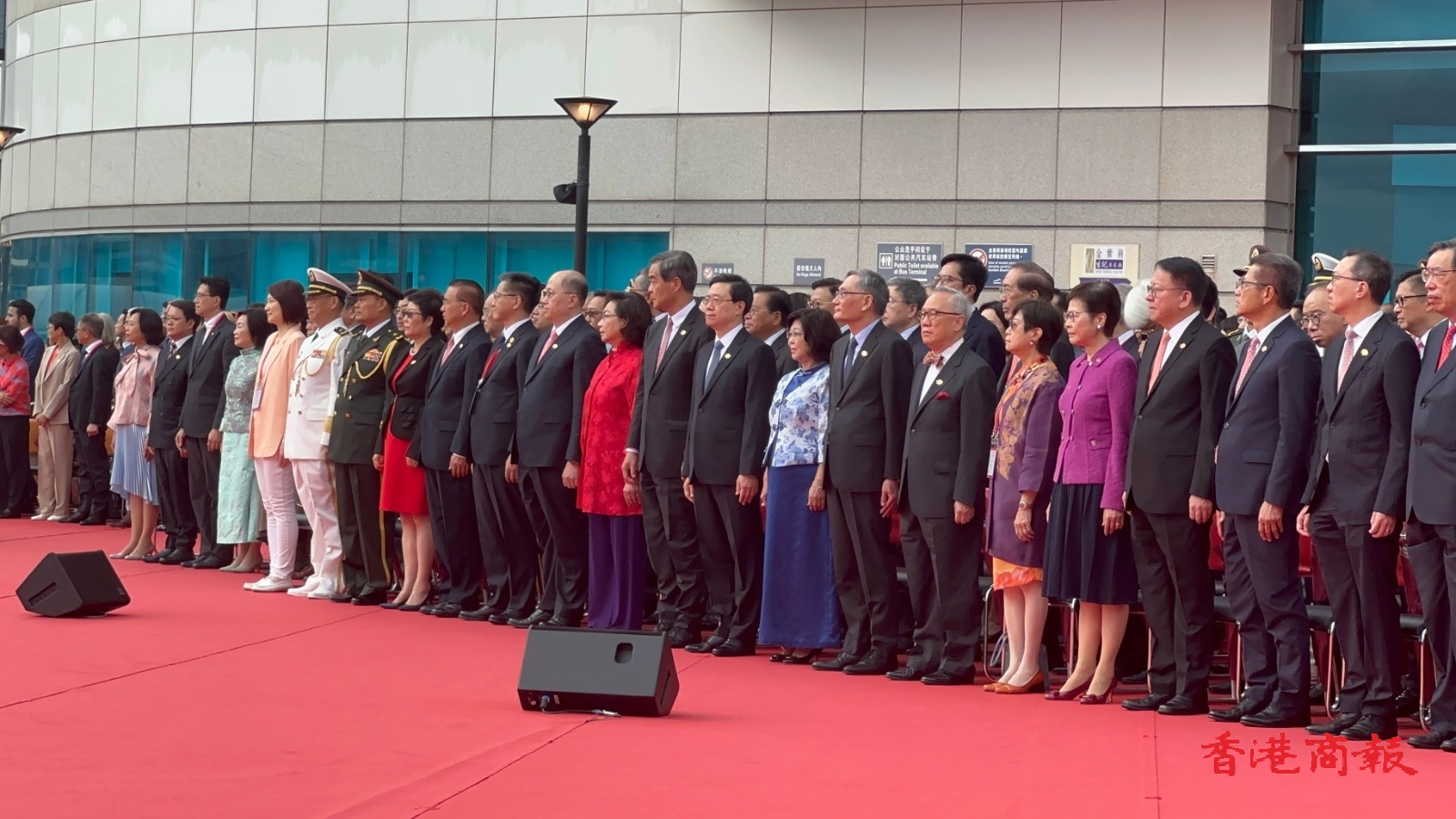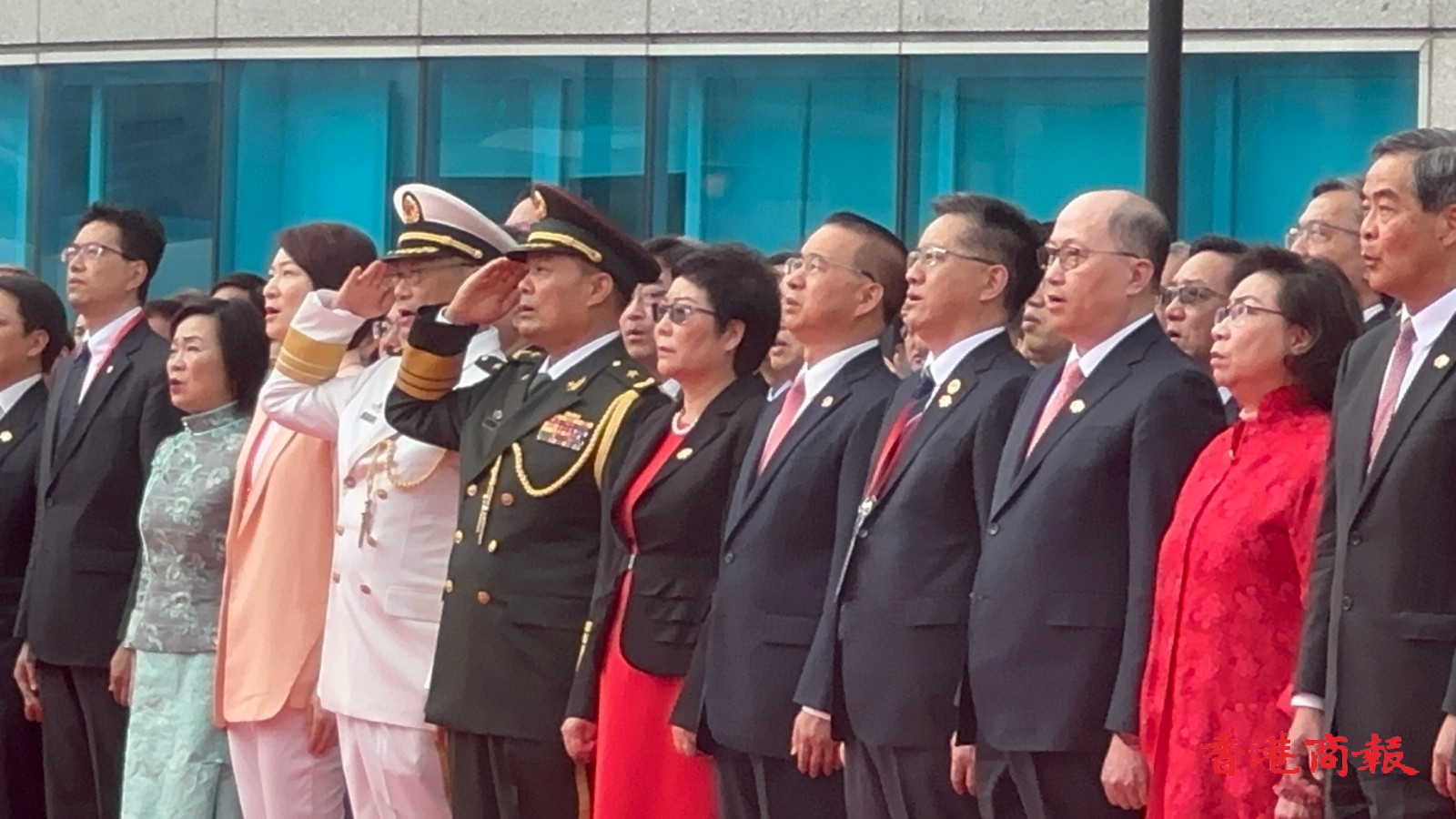 今日(7月1日)是香港回歸祖國26周年暨香港特區成立26周年紀念日,特區政府今早8時於灣仔金紫荊廣場舉行升旗儀式。出席嘉賓包括行政長官李家超伉儷、政府高層官員,前特首梁振英、曾蔭權和林鄭月娥,中聯辨主任鄭雁雄,外交部駐港公署特派員劉光源,行政會議成員、立法會議員,及社會賢達和制服團隊代表等。