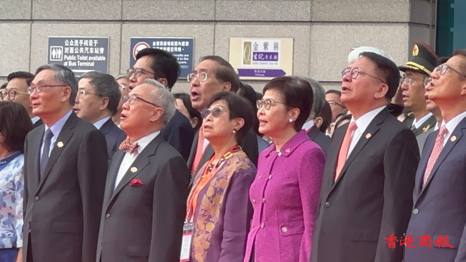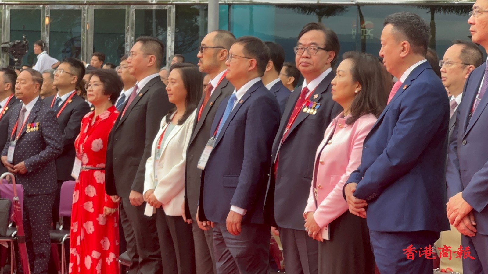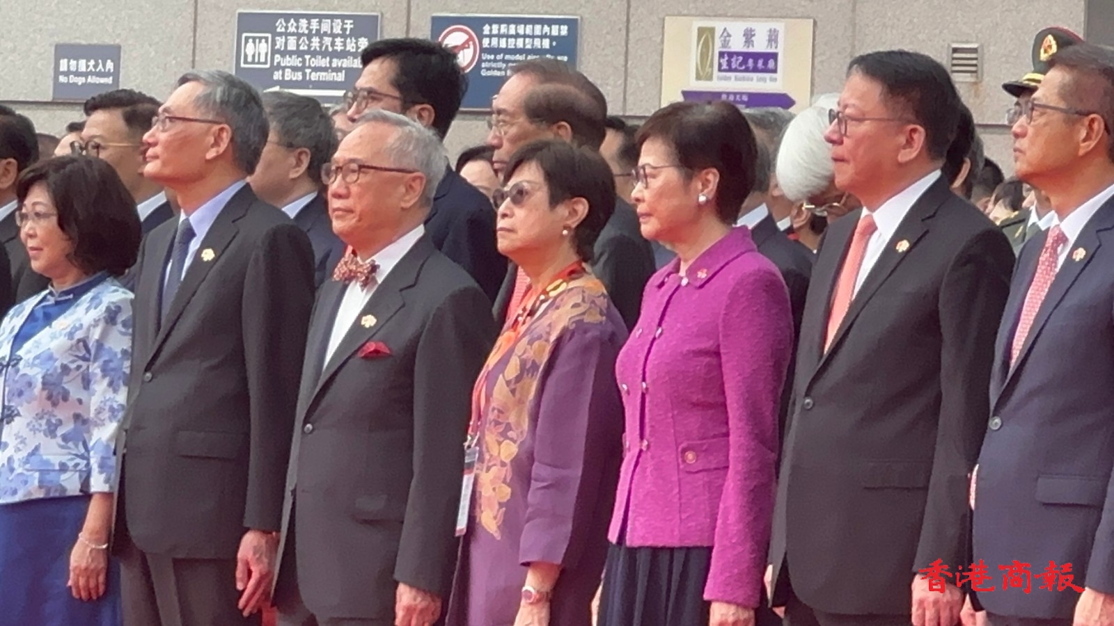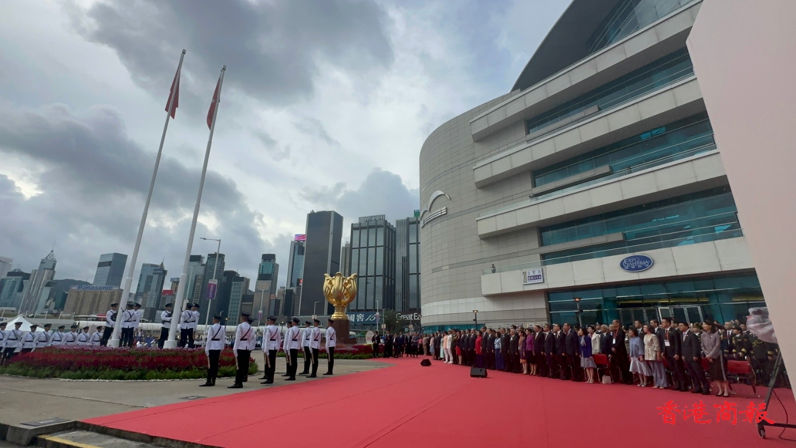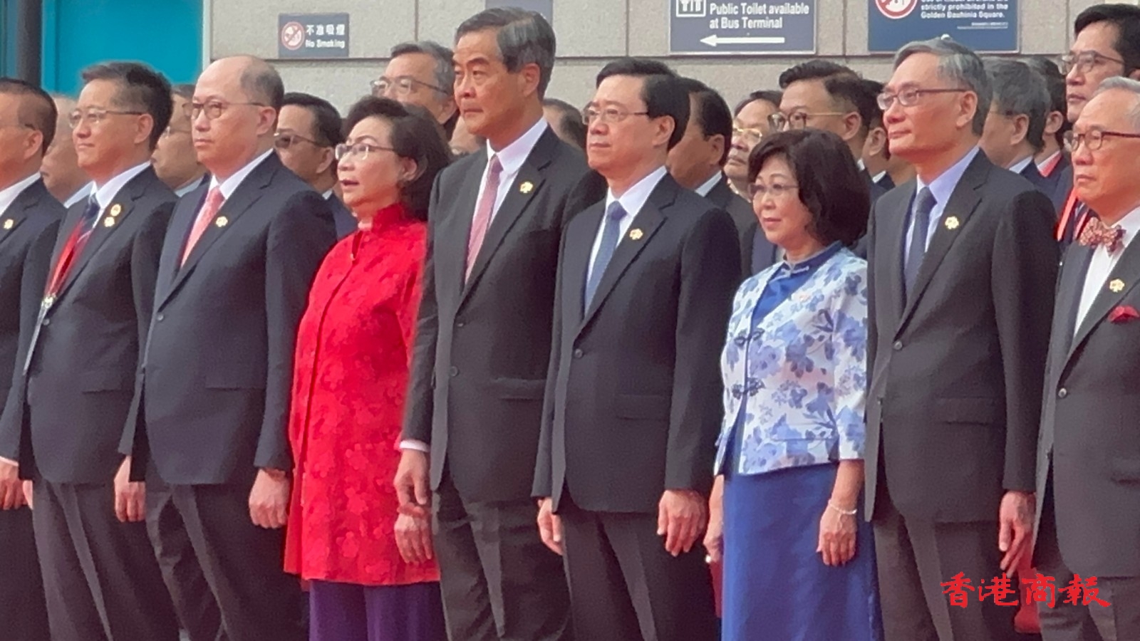 今日(7月1日)是香港回歸祖國26周年暨香港特區成立26周年紀念日,特區政府今早8時於灣仔金紫荊廣場舉行升旗儀式。出席嘉賓包括行政長官李家超伉儷、政府高層官員,前特首梁振英、曾蔭權和林鄭月娥,中聯辨主任鄭雁雄,外交部駐港公署特派員劉光源,行政會議成員、立法會議員,及社會賢達和制服團隊代表等。