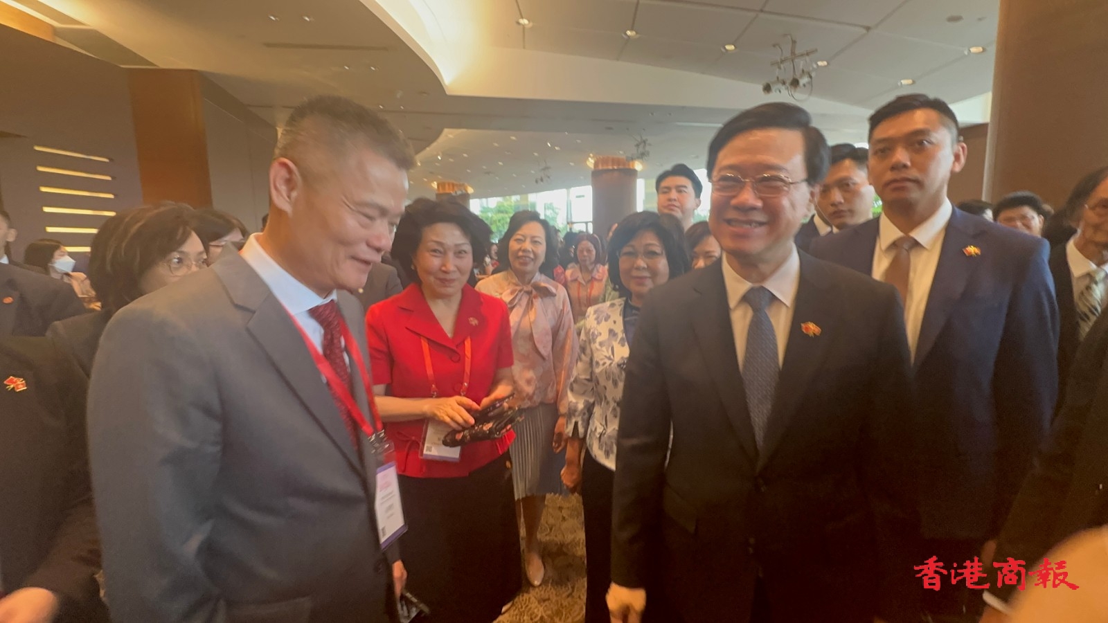 酒會上亦播出影片,回顧本屆政府上任一年來的工作,講述特區政府在中央政府支持下,帶領香港走出疫情,與內地及世界全面通關,穩步復常。