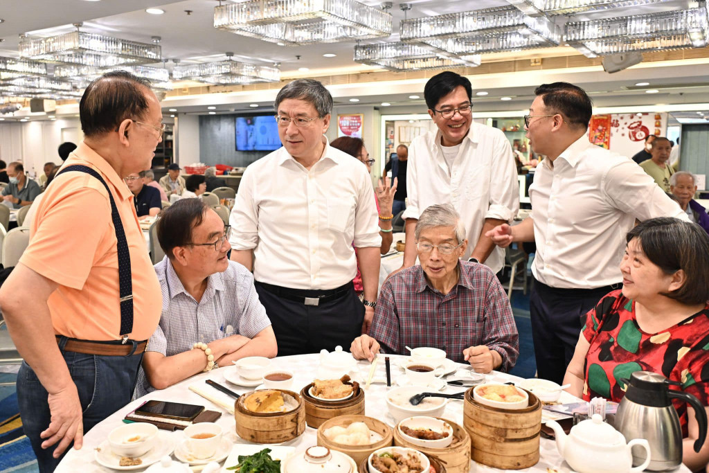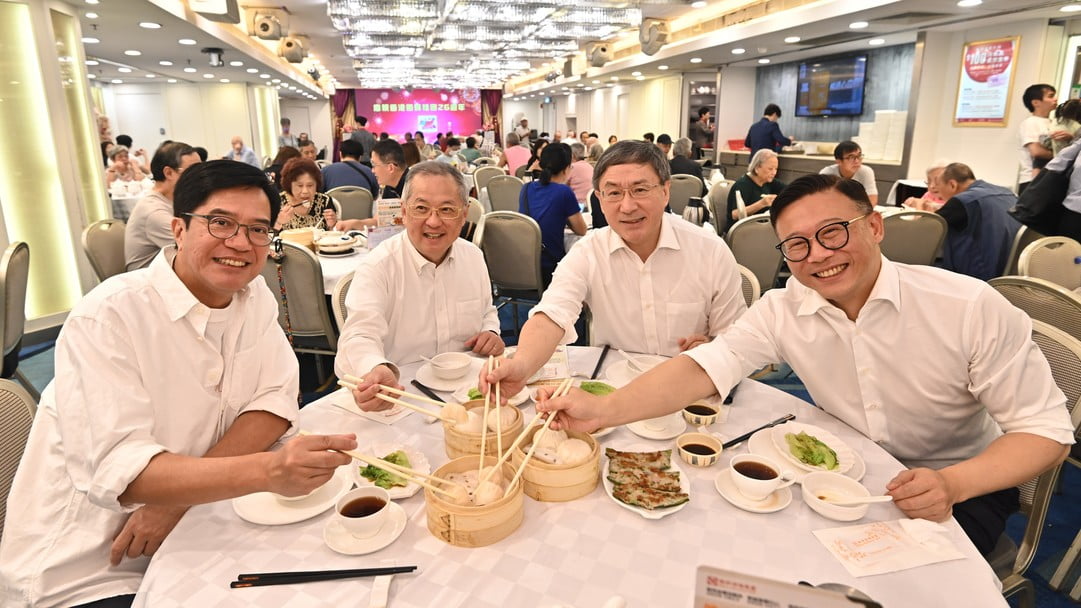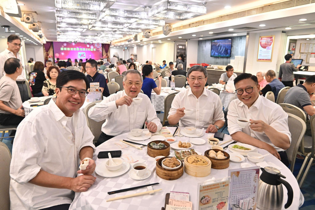 為慶祝香港回歸祖國26周年,近1500間食肆的指定套餐或食品提供七一折或特定優惠,包括連鎖快餐集團、茶餐廳、酒樓等。政務司副司長卓永興、財政司副司長黃偉綸和律政司副司長張國鈞,今日(7月1日)早上出席完升旗儀式及慶祝酒會後,相約到北角一家酒樓飲早茶,立法會飲食界議員張宇人亦有同行,體驗享用七一飲食優惠的喜悅,與市民共慶回歸。