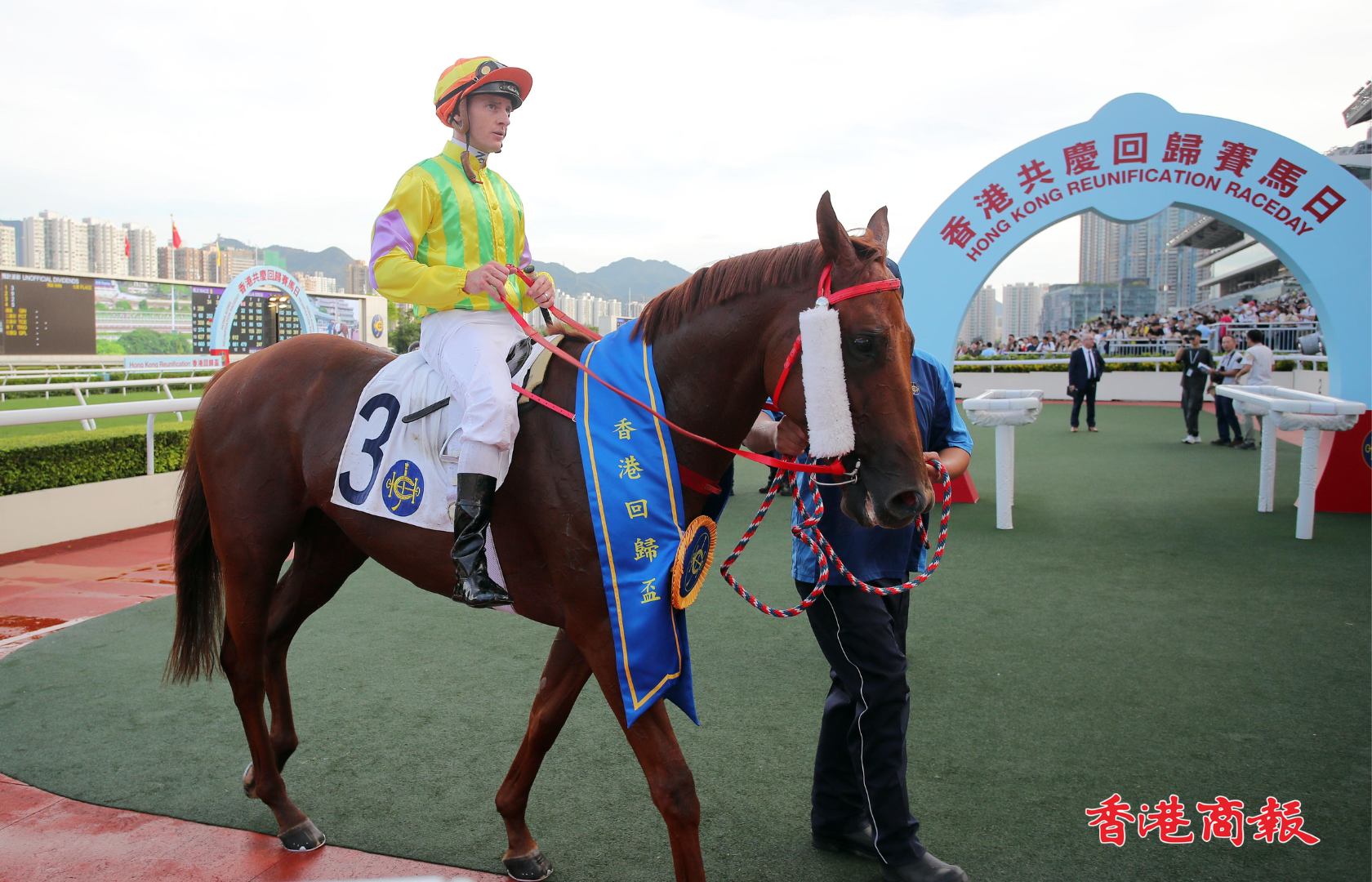 今日(1日)沙田馬場舉行「7.1共慶回歸賽馬日」,賽罷三場四班1200米粵港盃後,接戰四場二班2000米就是上演全日重頭戲香港回歸盃。