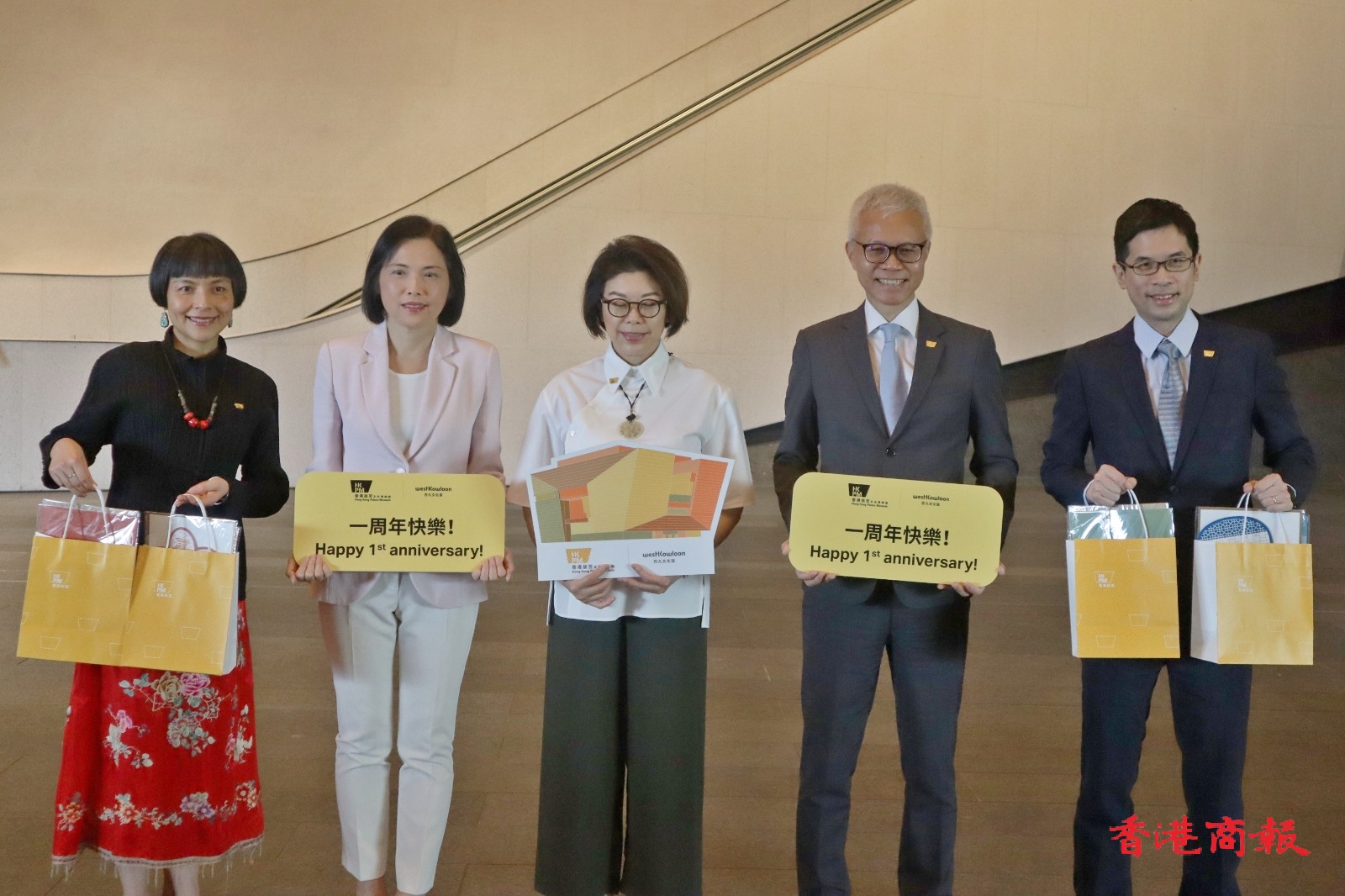 位於西九文化區的香港文化新地標——香港故宮文化博物館今天(3日)慶祝開幕一周年。為慶祝此重要里程碑,香港故宮文化博物館董事局主席譚允芝、西九文化區管理局行政總裁馮程淑儀、香港故宮文化博物館館長吳志華博士、博物館副館長(研究策展及節目)王伊悠博士及博物館副館長(博物館營運)袁貺霖今天於博物館內向首100名入場訪客贈送博物館的文創精品,以答謝公眾的支持。