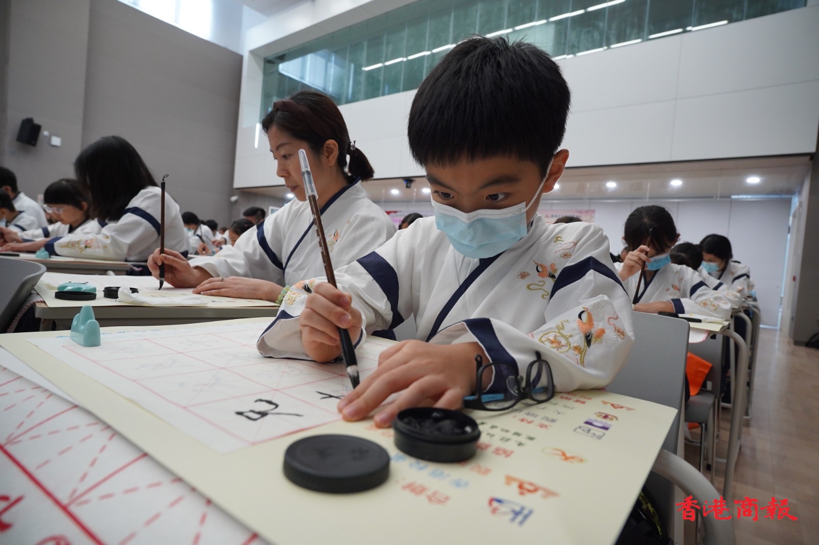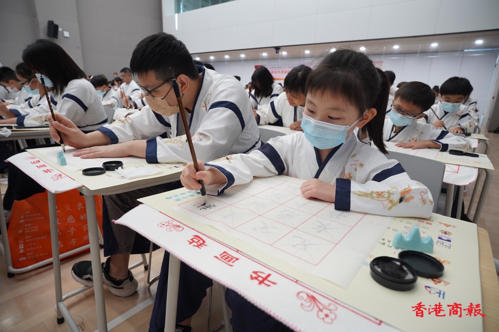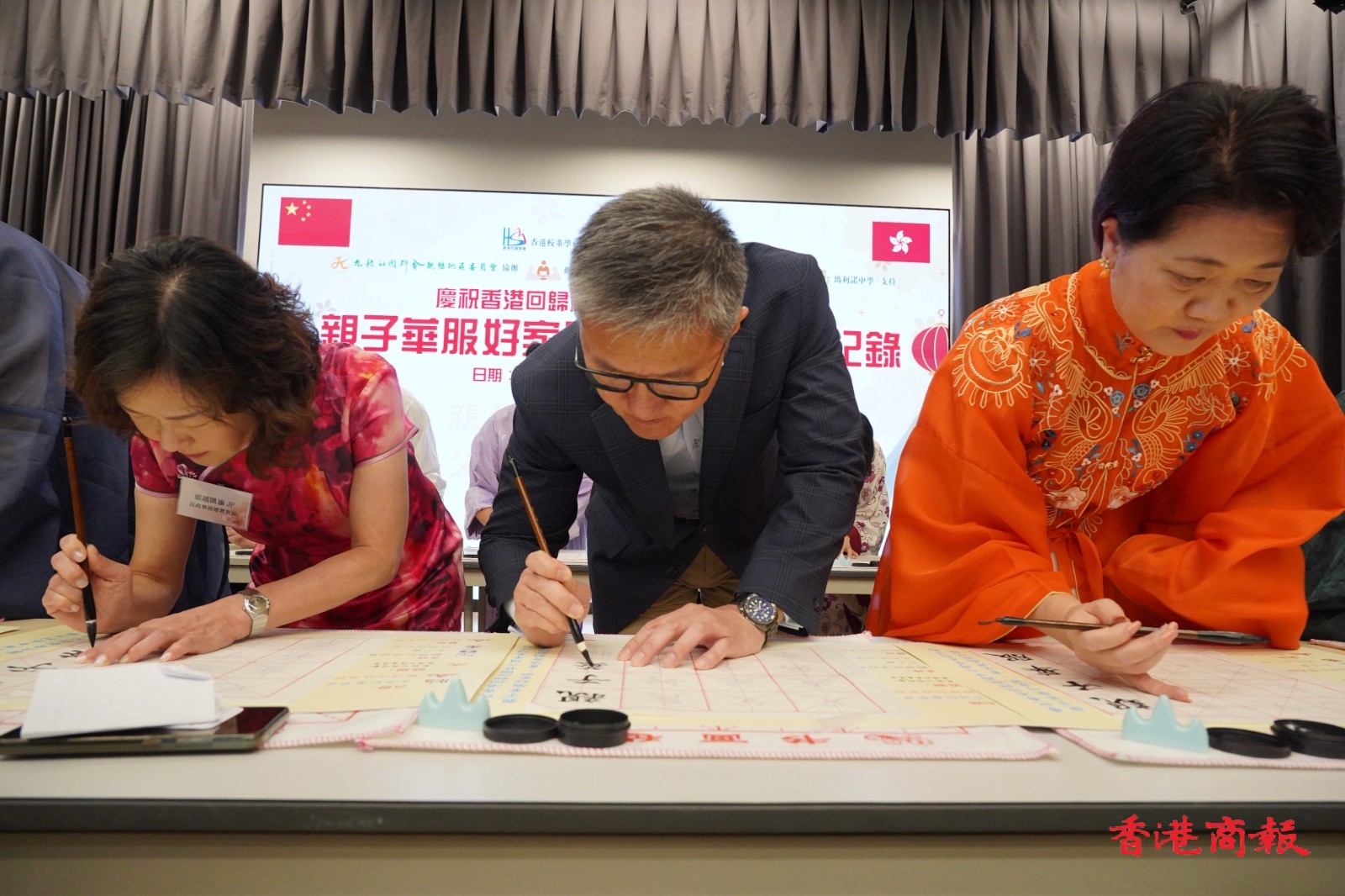 香港校董學會與觀塘民政事務處今日(9日)合辦慶祝香港回歸祖國廿六周年系列活動「親子華服好家風 書法齊創新紀錄」。11間學校合共128個親子隊伍身穿華服寫書法,民政事務總署署長張趙凱渝提到,特區政府會繼續把握香港作為世界級大都會和聯繫國家與國際之間的角色,進一步向國際推廣我國博大精深的優秀傳統文化。