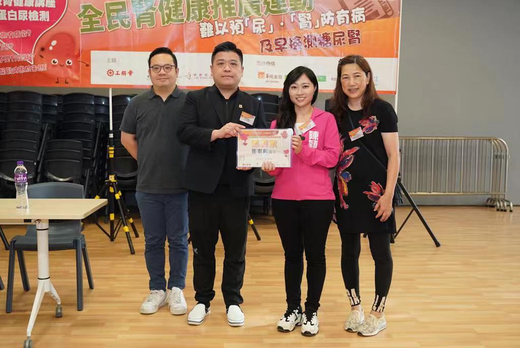 大會還邀請泌尿專科醫生崔家倫分享有關腎臟健康的資訊,亦為到場參與的市民分批提供即場尿液檢測,如果發現參加者評估屬潛在高風險,醫護人員會進行一對一健康諮詢,再按需要轉介至工人醫療所作尿液及血液檢驗。