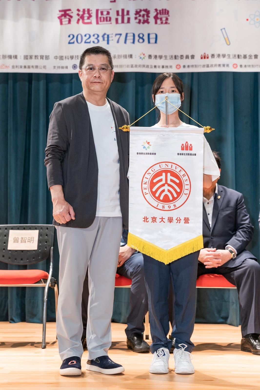 「高校科學營2023」優秀高中生獎勵計劃香港區授旗儀式和出發禮分別於6月和7月在香港舉行。出席兩次典禮的嘉賓、帶隊老師及營員人數逾400人。在7月8日舉辦的出發禮上,民政及青年事務局副局長梁宏正,全國政協委員、金利來集團主席、曾智明青少年發展基金會理事長曾智明擔任主禮嘉賓,並主持出發授旗儀式,為科學營拉開序幕。