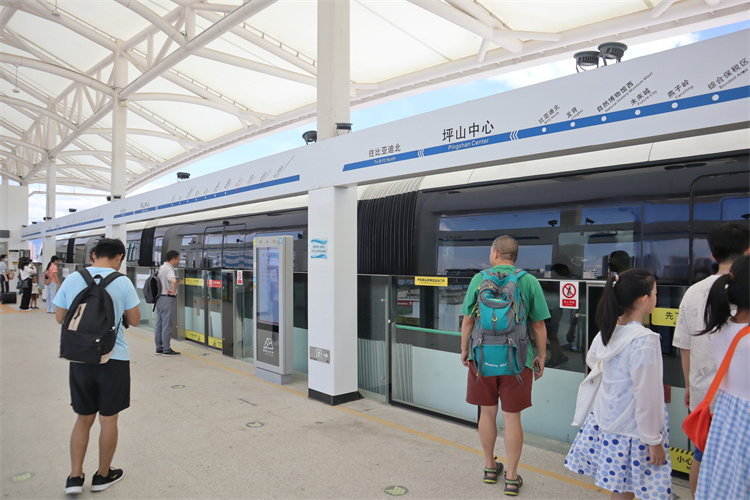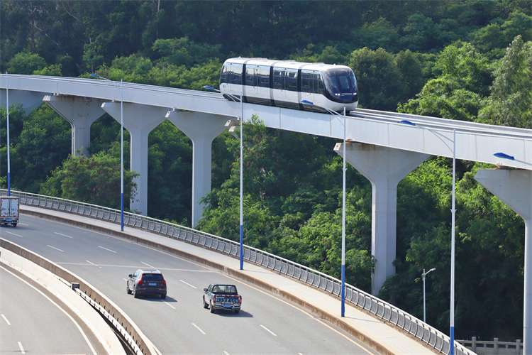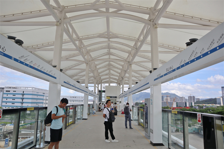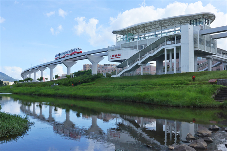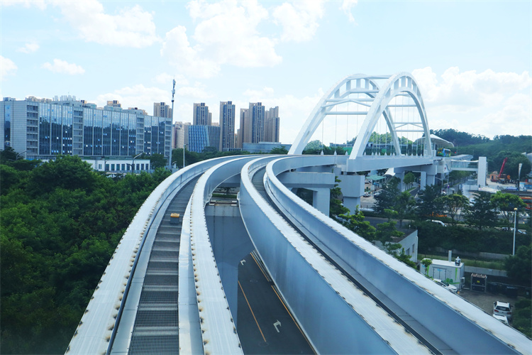 坪山雲巴1號線,原名為坪山雲軌旅遊專線試驗線,起自坪山高鐵站,終至比亞迪北站,共設車站11個,全長8.506公里。坪山雲巴作為一種小運量軌道交通,不僅具有高智能化、低能耗、低噪音、高安全等技術特點,也運用了許多黑科技。