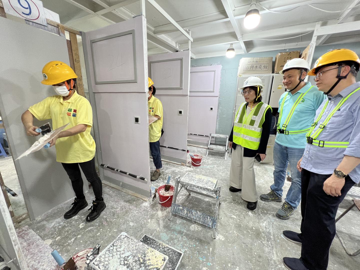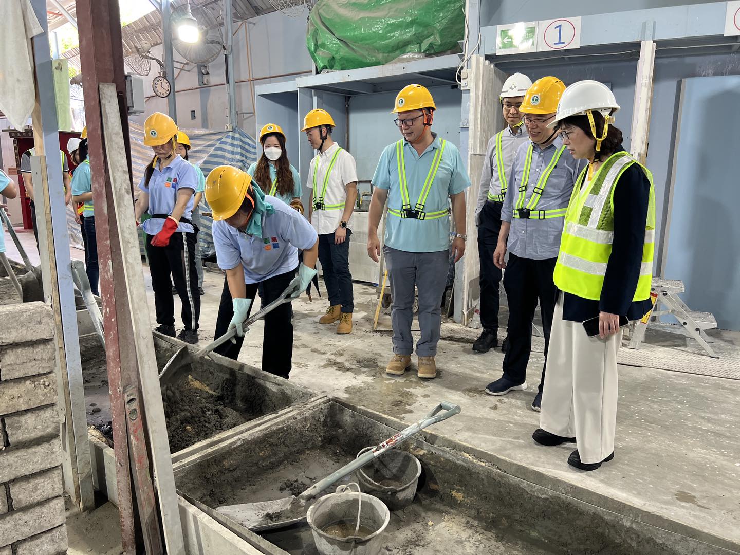 發展局局長甯漢豪今日(12日)應立法會議員黃國的邀請,到訪香港建造業總工會錦上路會員工藝交流中心,參觀多個工種的培訓場地。甯漢豪表示,面對建造業勞工短缺,政府必須多管齊下,亦會嚴格把關,確保本地勞工優先就業。