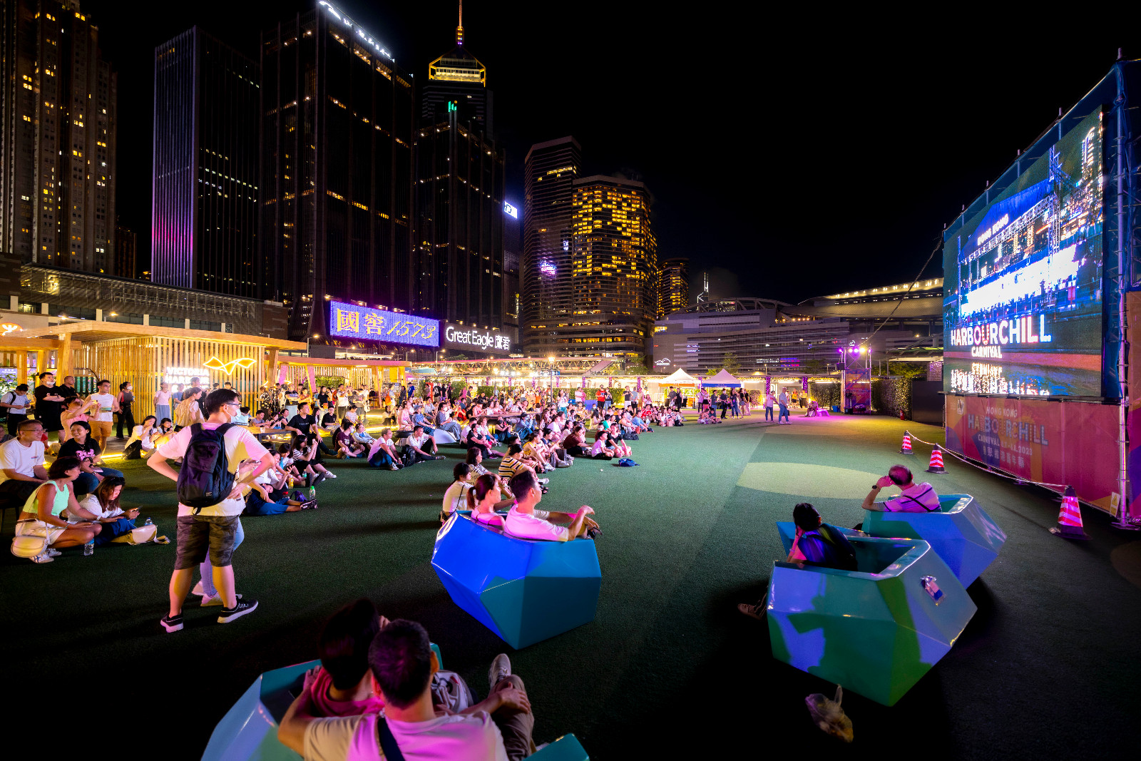 此外,嘉年華在灣仔渡輪碼頭附近草地設有休憩區,即使未能取得音樂會門票的市民旅客,亦可以在休憩區觀賞音樂會直播,更可到「盛夏飲品小食」區,享用多款盛夏飲品小食,包括爆谷、手工啤酒,以及富有港式風情的點心、蛋撻等。
