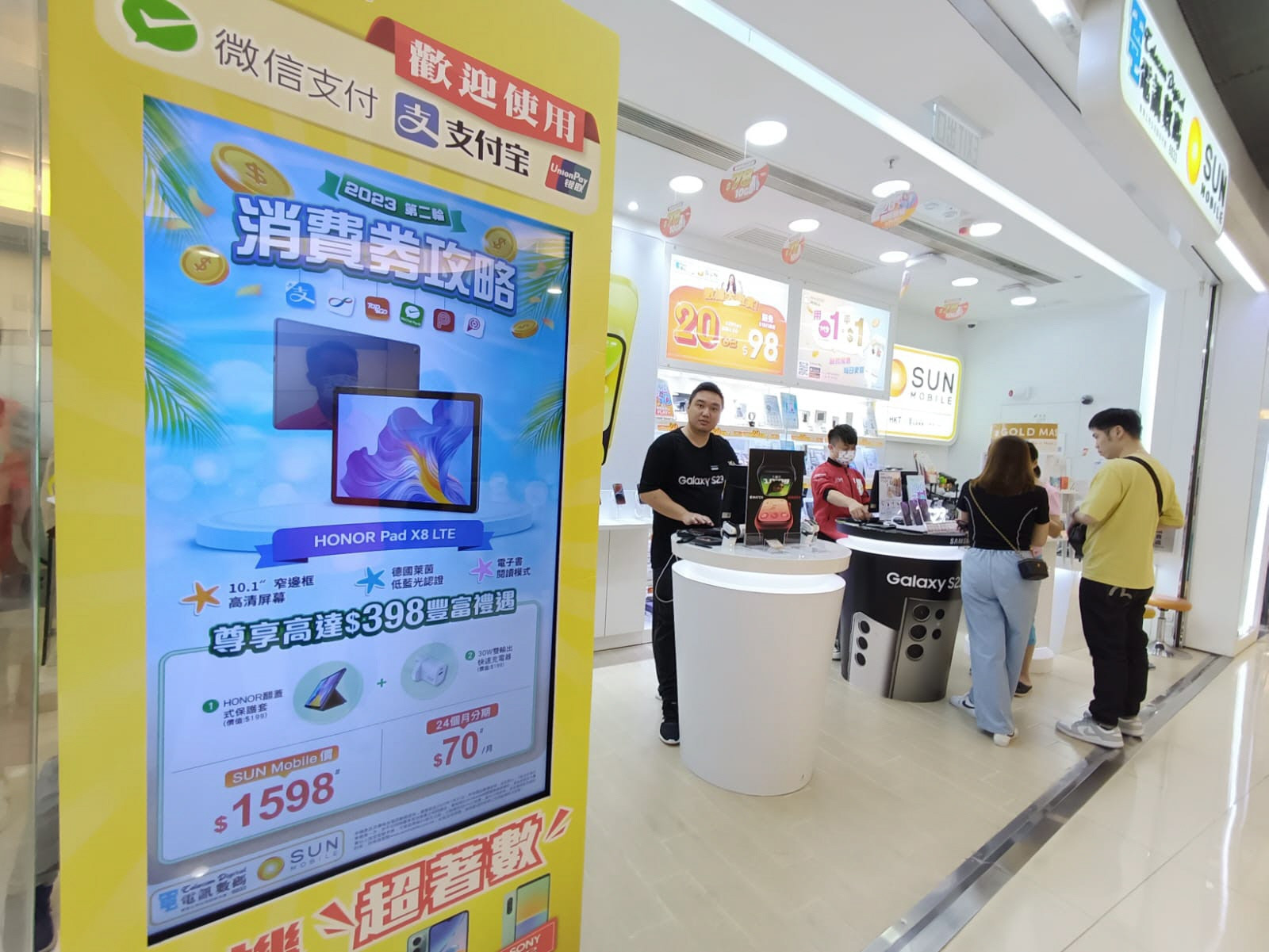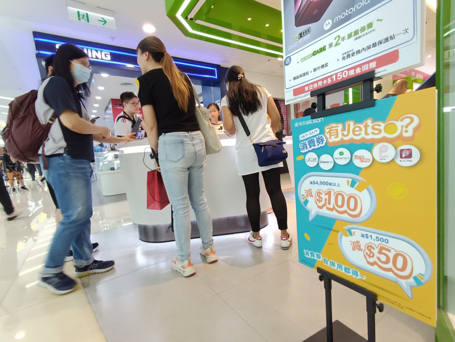 電器店總經理周先生覺得消費券令銷售額增加10%至20%,客人大多購買2000至3000元電子產品,人均消費達到3000至5000元,當中手機、電腦、雪櫃最受歡迎,而開店首兩小時已完成平時三至四成生意。周先生說,作為零售業希望政府繼續派發消費券,刺激港人在本地消費,因外遊人數增多,假如缺乏一定優惠對零售提振不大;至於派發3000或2000元消費券對銷售額影響不大,只是銷售產品會由家庭電器變成數碼產品為主。