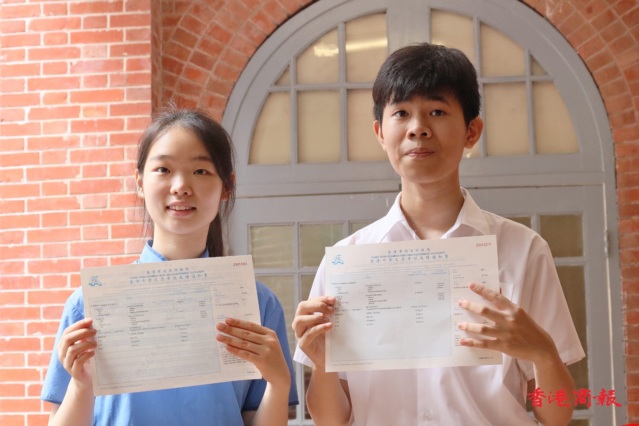 聖保羅男女中學1男1女狀元藍仲宏及古冰心考獲7科「5**」,成為狀元,兩人的數學延伸部分亦考到「5**」,屬於「超級狀元」。(記者 馮瀚文攝)