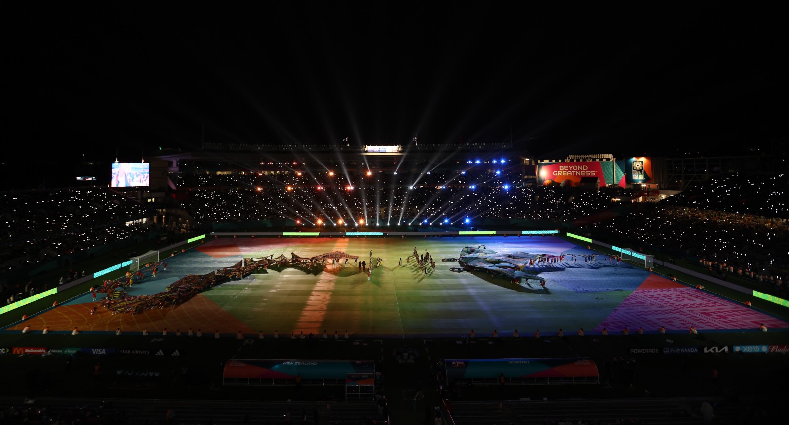 7月20日,2023年國際足聯女足世界盃開幕式在新西蘭奧克蘭伊甸公園球場舉行。首場比賽,新西蘭隊對陣挪威隊。(圖源:新華社)