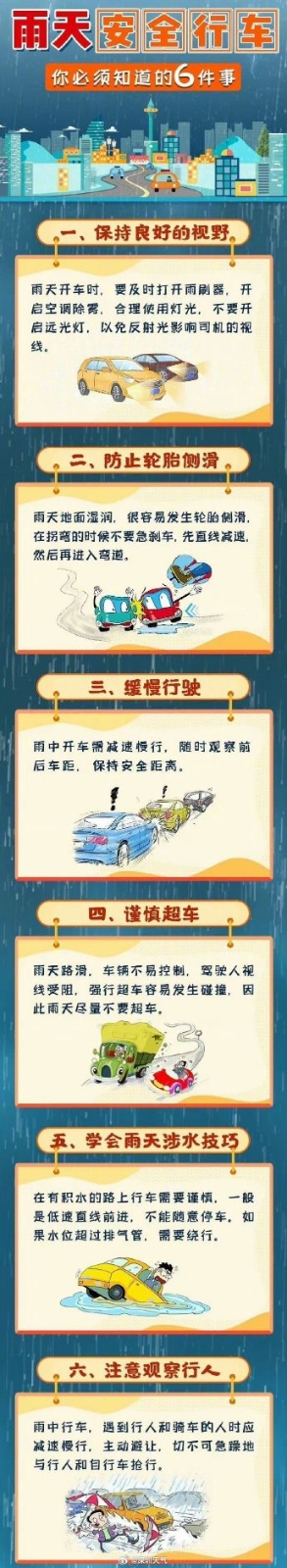 雨天路滑,行車應當更加謹慎,安全第一。雨天安全行車,你應該知道的6件事!一起來看看↓↓