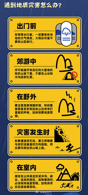 強降雨會導致土壤含水量飽和,發生地質災害的風險高,請大家提高警惕,注意遠離危險邊坡、危房、危牆等危險區域,注意出行安全。