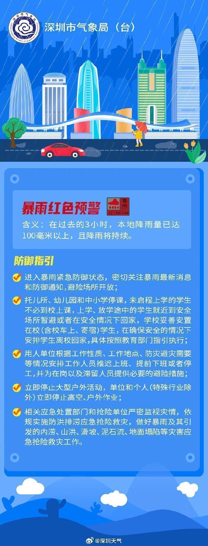 深圳市分區暴雨橙色預警升級為紅色、分區暴雨橙色預警