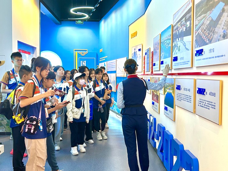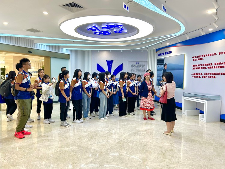 隨後,交流團參觀了中國南水北調集團展廳,詳細了解南水北調工程的歷史由來、重大意義和科學原理等相關知識。學生們聚精會神地聆聽,並對工程科技創新的魅力稱讚。