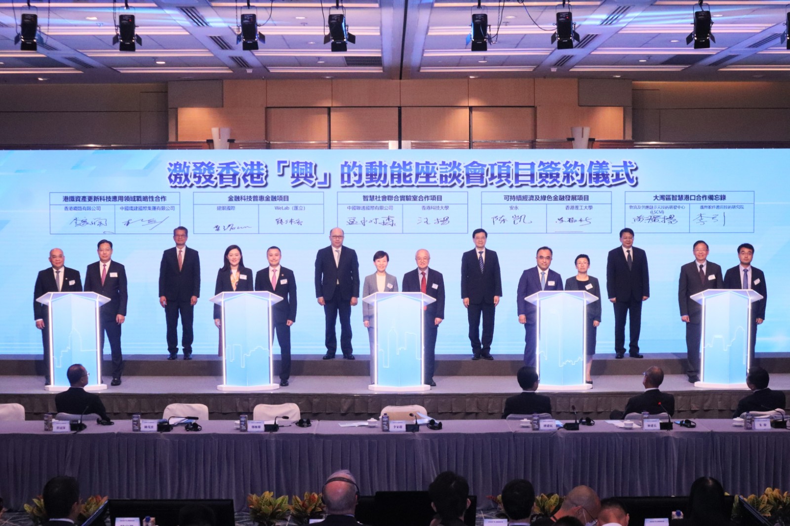 李家超又提到,今天座談會將舉行十多個專案的簽約儀式,涵蓋大灣區建設、「一帶一路」合作、科技創新、北部都會區建設等領域,就是團結各界力量,同為香港開「興」篇。