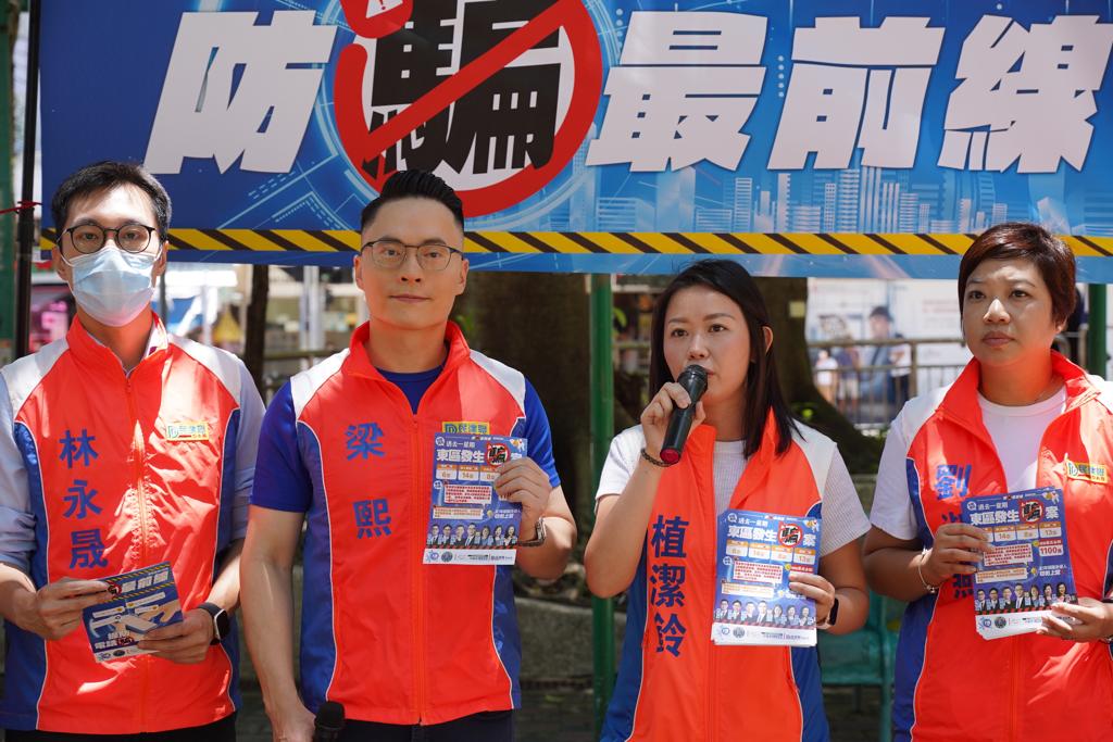 民建聯港島東團隊與警方合作,開展「防騙最前線」行動,今日(2日)在小西灣邨舉行啟動禮。民建聯社區主任植潔玲透露今日在邨內12幢大廈派發防騙錦囊,未來會在東區各區大廈張貼海報,並將根據警方公布的騙案數字決定行動是否延長。