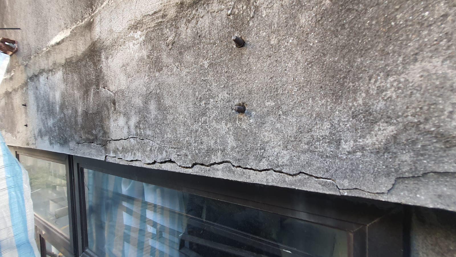 屋宇署人員用無人機視察兩幢分別位於荃灣沙咀道及葵涌青山公路的樓宇外牆,發現第一幢樓宇面向沙咀道1樓露台底部有約200毫米乘200毫米的批盪有鬆脫跡象,而另一幢面向青山公路1樓及面向光輝里5樓外牆亦有批盪破損情況,對公眾構成潛在風險,人員已即時安排政府承建商展開緊急工程,拆除鬆脫部分。(圖源:屋宇署fb)