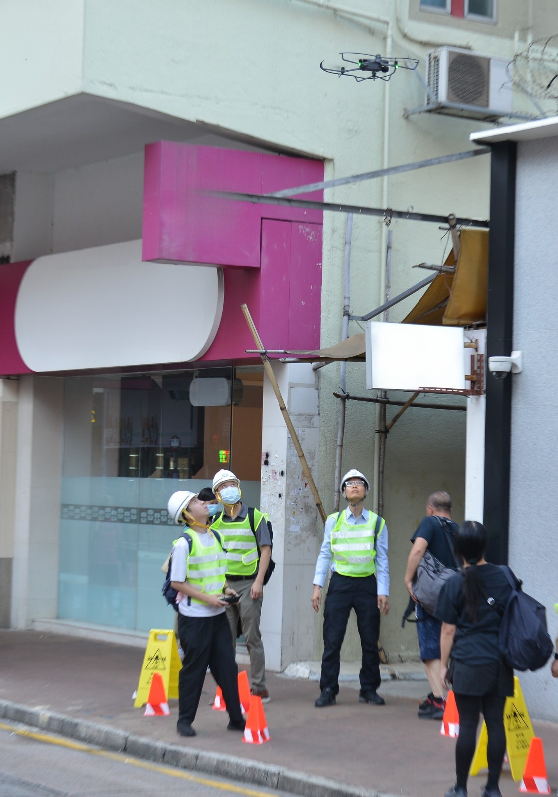 近日本港接連有舊樓外牆石屎或批盪剝落,導致多位市民受傷,舊樓失修情況引起關注。屋宇署由昨日(2日)起陸續用無人機為一些已收到強制驗樓通知但業主還未委任註冊檢驗人員,而風險較高的樓宇外牆進行特別勘察。