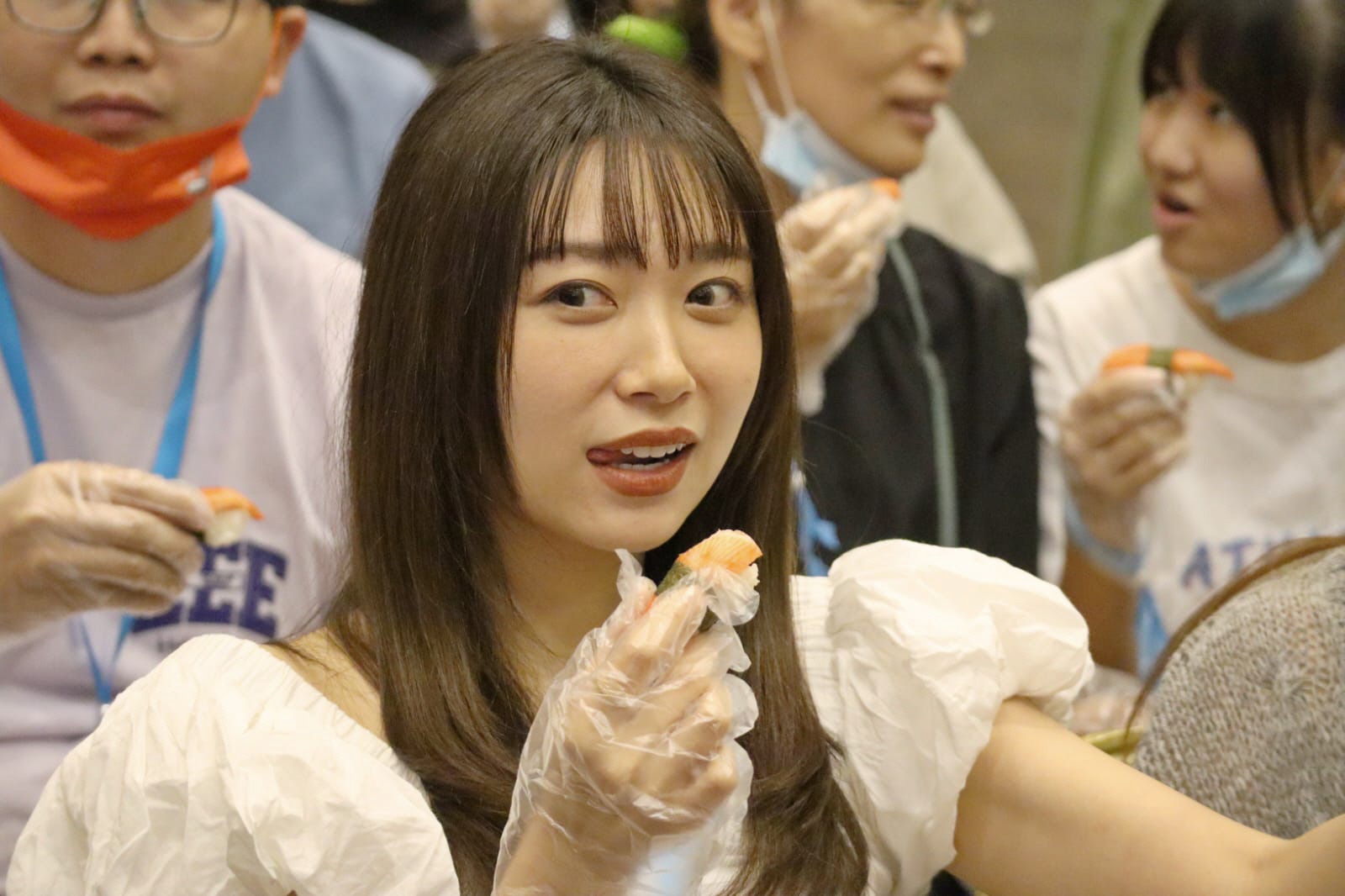 活動主持人周奕瑋其後與美食家杉內馨引領在場會員進行「最大規模的壽司品鑑活動」。杉內馨介紹今次挑戰的壽司名為「助六壽司」,並提到其來源牽涉到《助六由緣江戶櫻》,這是一部日本歌舞伎。兩人其後呼籲參加者先品嚐蟹風味棒壽司、再品嚐玉子燒壽司,最後是腐皮壽司。至於歌星王灝兒都是參與者之一,並在等待結果公布期間獻唱三首歌曲。